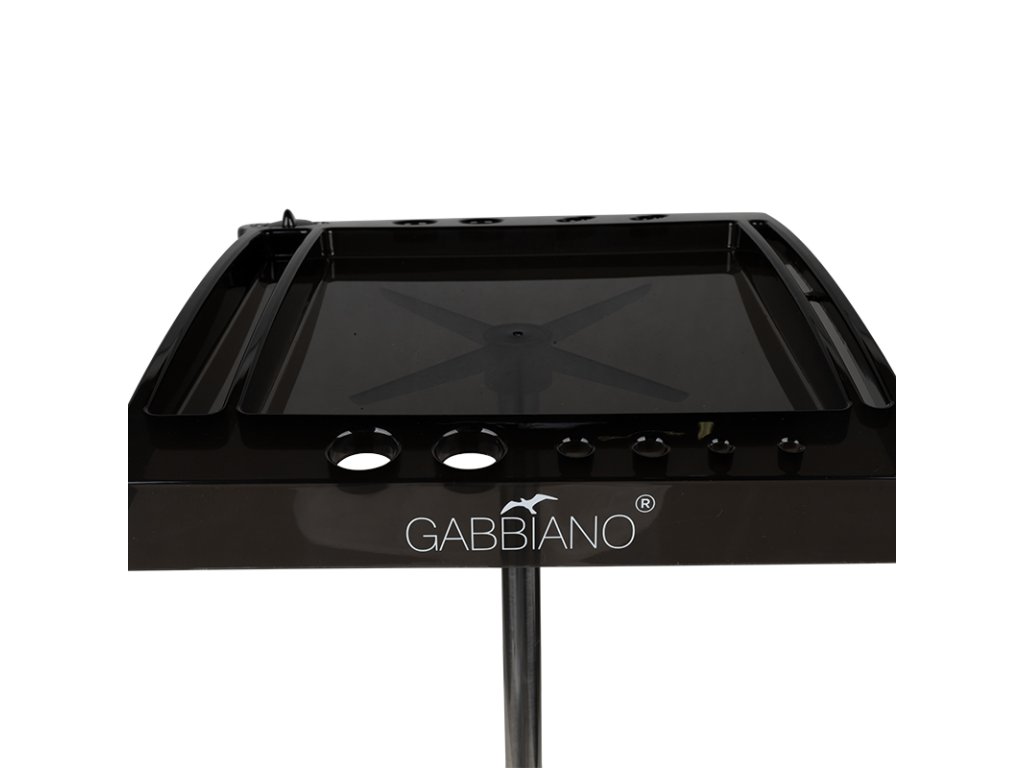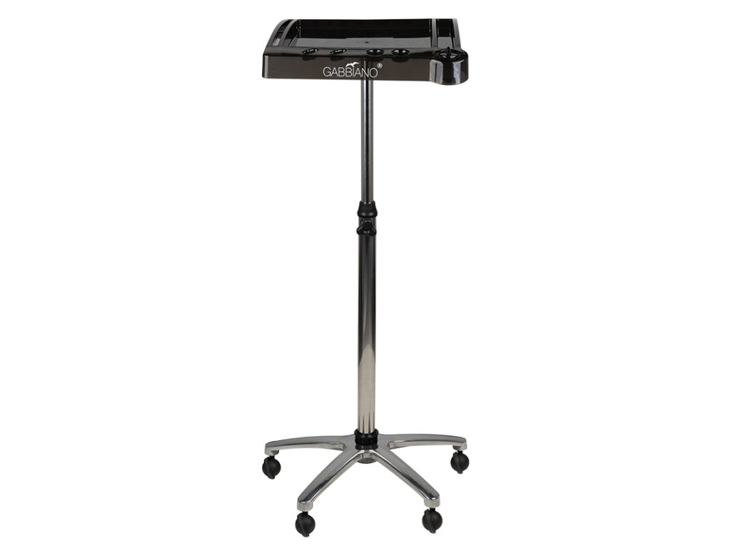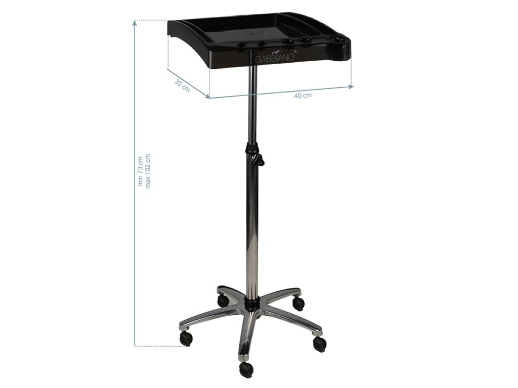 Černý kadeřnický pomocník. Stabilní konstrukce zajistí dlouhodobé používání. Pomocník připevněný na kolečkách, díky kterému budete mít nářadí vždy po ruce.