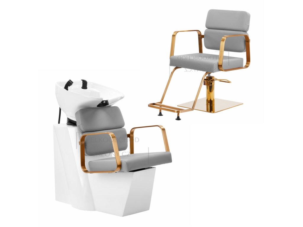 Kadeřnický set Porto obsahuje kadeřnický mycí box a kadeřnické křeslo s podnožkou.