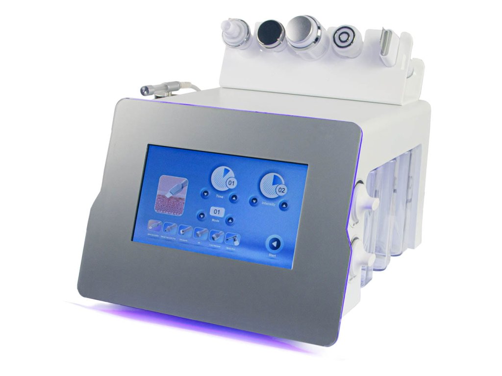 Kombajn 6w1 AquaPeel BR-069 bardzo skutecznie usuwa zaskórniki ,zwęża pory i reguluje wydzielanie sebum. Bardzo delikatna forma peelingu dla skóry ,nawet trądzikowej Pomaga zwęzić naczyńka. Usuwa problemy ze skórą szarą, zmęczoną albo z nadmiernym łojotokiem. Nawadnia i dotlenia, poprawia cyrkulację krwi. Redukuje także blizny po trądziku, spłyca zmarszczki, usuwa drobne przebarwienia i poprawia koloryt skóry. Ponadto urządzenie wyposażone jest w takie funkcje jak hydrodermabrazja, dermabrazja, peeling kawitacyjny z sonoforezą, ultradźwięki, RF, głowicę COLD oraz spray. Istotne atuty urządzenia to:-Elegancki nowoczesny design,-Inteligentny system kontroli poziomu wody, -System automatycznego czyszczenia.-Ekran dotykowy.Hydrodermabrazja i dermabrazja z dwoma końcówkami z opcją niezwykle precyzyjnej kamery (nalezy pobrać aplikację na telefon) i 1 standardową. Peeling kawitacyjny o częstotliwości do 34kHz, -intensywność pracy 1-10 (skok co 1), -czas pracy od 2 do 20min (skok co 2), -dwa tryby pracy: ciągły i przerywany. Ultradźwięki o częstotliwości do 1MHz, -1 głowica płaska o średnicy 4cm, -intensywność pracy 1-10 (skok co 1), -czas pracy od 2 do 20min (skok co 2), -dwa tryby pracy: ciągły i przerywany. RF o częstotliowości do 3MHz, -1 głowica bi-polarna o średnicy 4cm, -intensywność pracy 1-10 (skok co 1), -czas pracy od 2 do 20min (skok co 2), -dwa tryby pracy: ciągły i przerywany. Głowica COLD z regulacją temperatury 0 do 10stopni C, -intensywność pracy 1-10 (skok co 1), -czas pracy od 2 do 20min (skok co 2), Spray -intensywność pracy 1-10 (skok co 1), -czas pracy od 2 do 20min (skok co 2), Dane techniczne:-ekran dotykowy 12x22cm, -wymiary urządzenia: 36x52x26cm, -wymiary opakowania: 62x57x35cm, -waga urządzenia: 10kg, -napięcie 230V, 50Hz, -moc 80W
