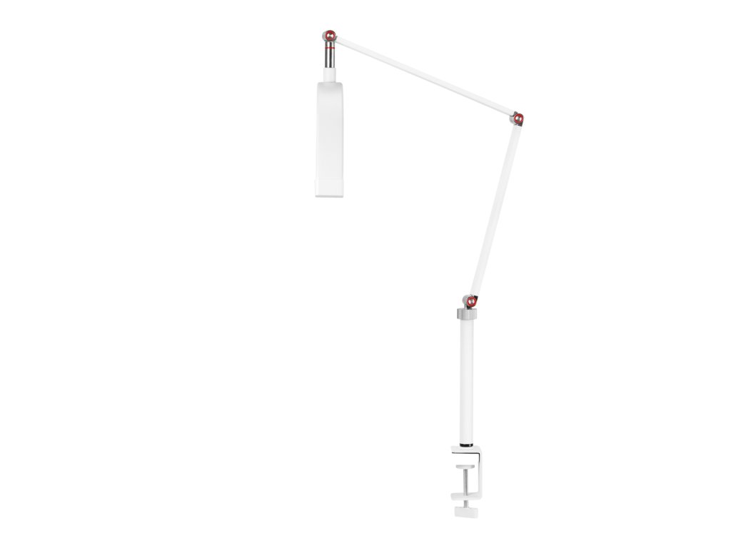 Jednoduchý tvar stativu v klasickém odstínu bílé znamená, že lampa bude vypadat skvěle téměř v každém interiéru. Matný povrch a červené prvky na spojích mu dodávají elegantní vzhled. Snadná instalace na pracovní desku je možná díky rukojeti ve tvaru svěráku , jejíž maximální otevření je 6 cm - bude vhodné pro většinu pracovních desek.