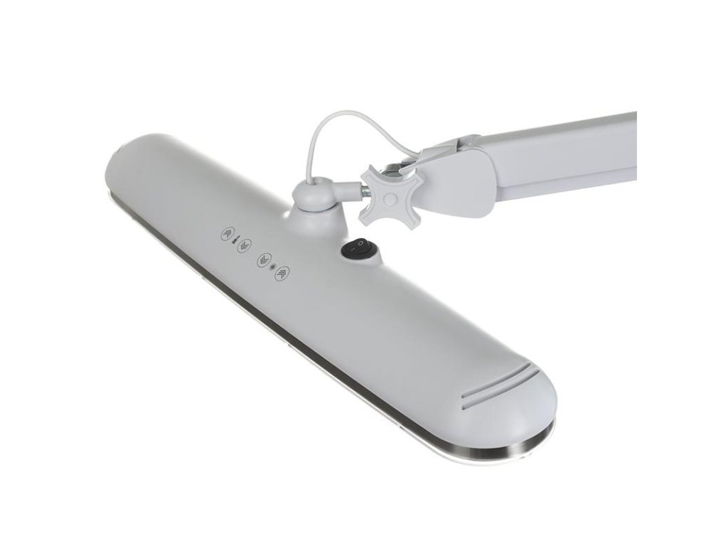 Lampa je vybavena čtyřstupňovou regulací intenzity i barvy světla (3500–6500 K) – od teplého po studené. Díky tomu si můžete přizpůsobit osvětlení podle typu procedury nebo prostředí. Spínač je umístěn v horní části rámu pro snadnou obsluhu.