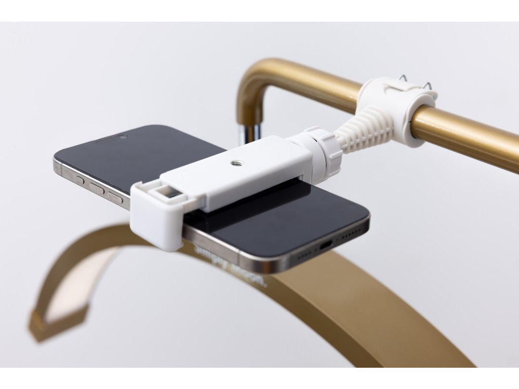 Součástí je držák na telefon – ideální pro tvorbu obsahu nebo detailní záznam práce