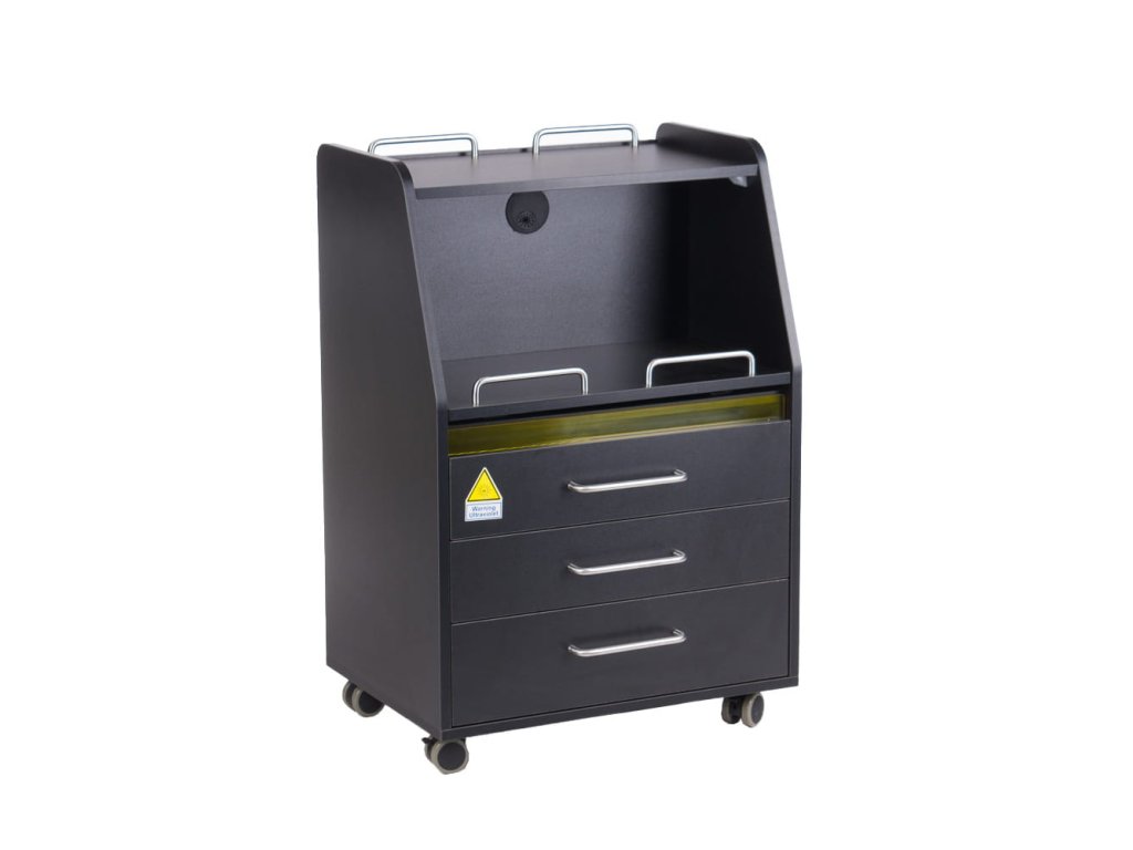 Nabízená kosmetická skříňka je vyrobena ze dřeva, široké police a mobilita zajišťují pohodlné používání. Díky dodatečnému vestavěnému UV sterilizátoru je velmi praktický. Investujte do funkčních řešení a vlastního pohodlí. Nenahraditelný v každodenní práci. Snadno se přemisťuje díky pogumovaným kolečkům. Vestavěný UV sterilizátor výsuvná police na kolejničkách. Dvě zásuvky.