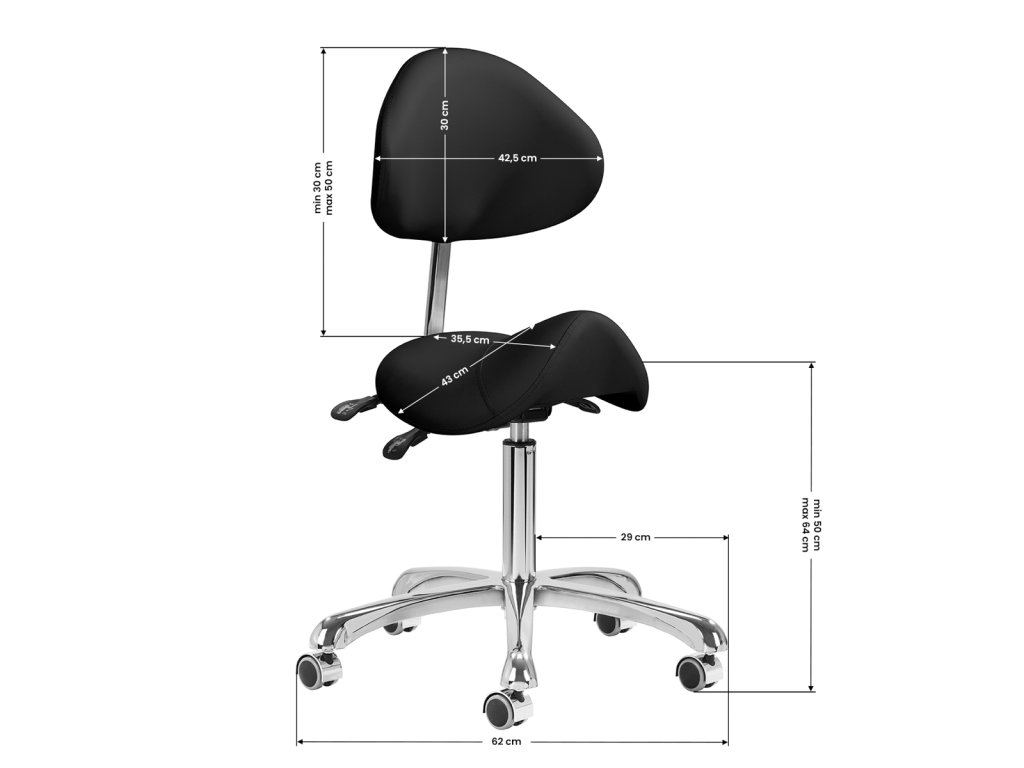 Pohodlná, exkluzivní, stabilní kosmetická stolička s opěradlem a profilovaným sedákem na pětihvězdičkové, velmi stabilní základně. Nastavitelný ve třech vrstvách: