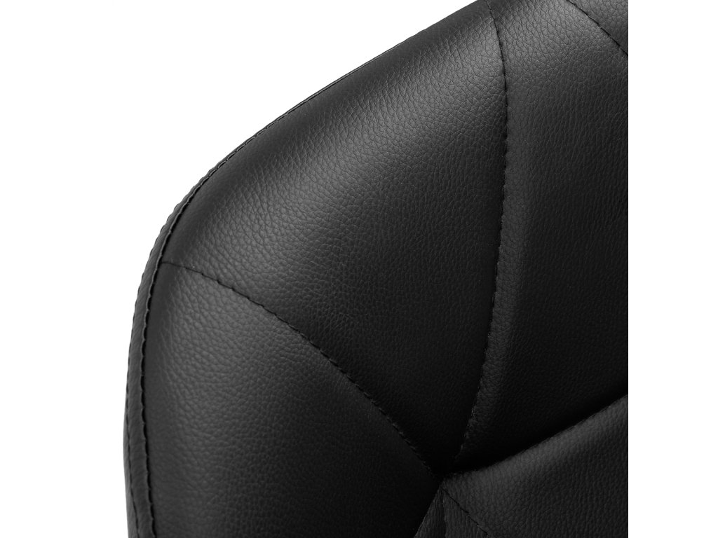 Pěti paprsková základna v černém odstínu je vybavena plastovými kolečky , která zajišťují výraznou mobilitu a umožňují volné přemisťování nábytku po kanceláři. Sedák taburetu je čalouněný na dotek příjemnou imitací kůže v elegantním odstínu černé. Použitý materiál zaručuje trvanlivost, odolnost proti vlhkosti a snadné čištění . Celek je doplněn stylovým prošíváním , které zdůrazňuje moderní design.