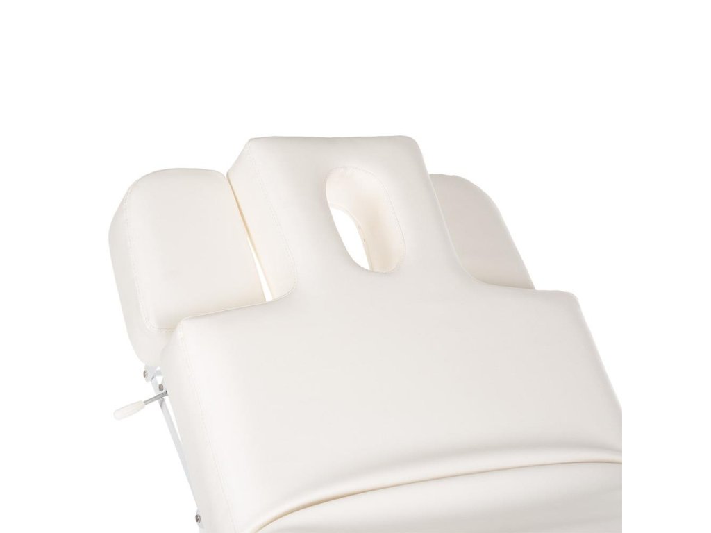 Lehátko má stabilní konstrukci a širokou základnu, která zajišťuje bezpečnost i při dynamických procedurách. Opěrky rukou jsou snadno nastavitelné nahoru a dolů, což zvyšuje pohodlí klienta. Obličejový otvor umožňuje pohodlnou polohu při masážích, a to i při dlouhodobých sezeních.