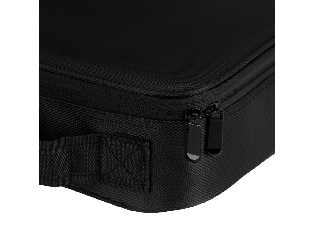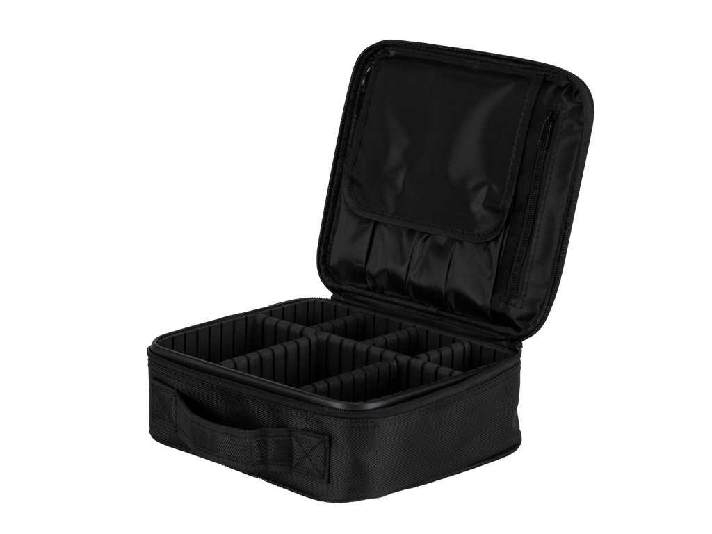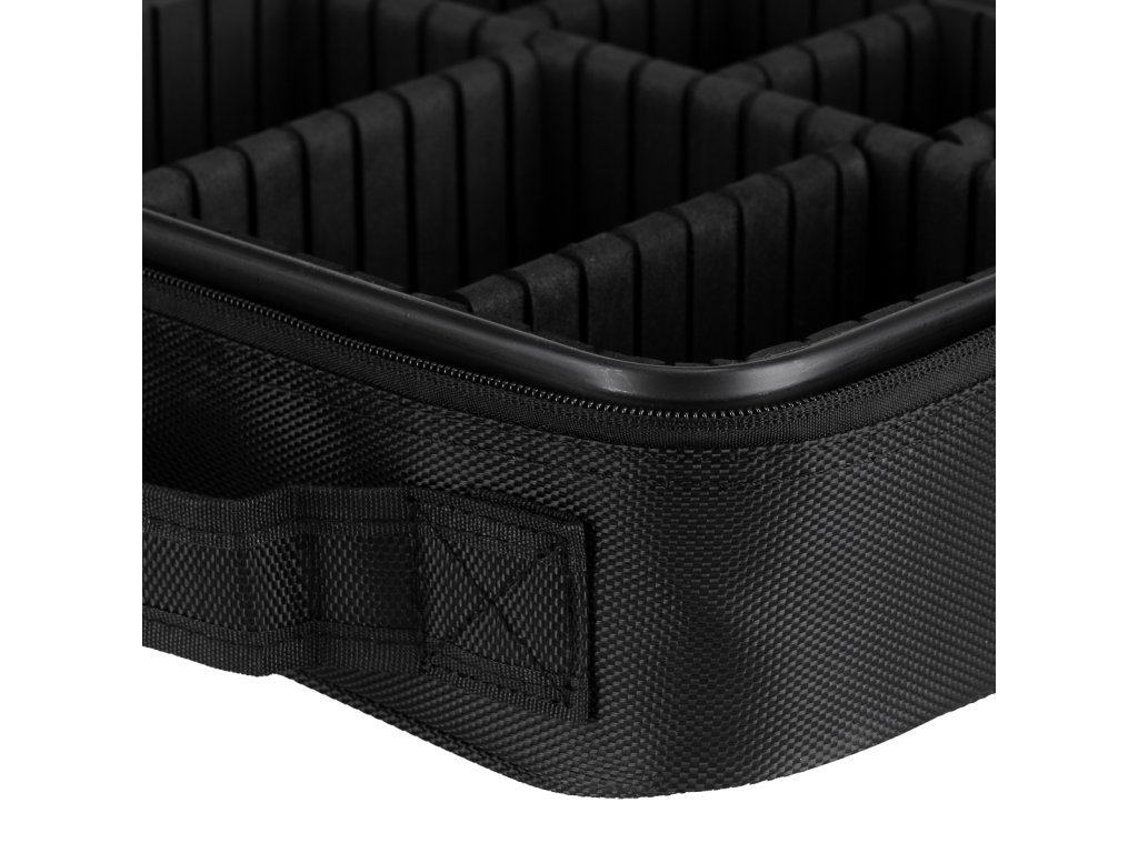 Prostorná přihrádka kufříku umožňuje efektivní organizaci nářadí. Nastavitelné přihrádky umožňují přizpůsobit interiér individuálním potřebám uživatele . Víko pouzdra je pro zvýšení funkčnosti vybaveno kapsami a přihrádkami uzavíranými na zip a suchý zip - ideální pro uložení štětců nebo jiného plochého příslušenství.