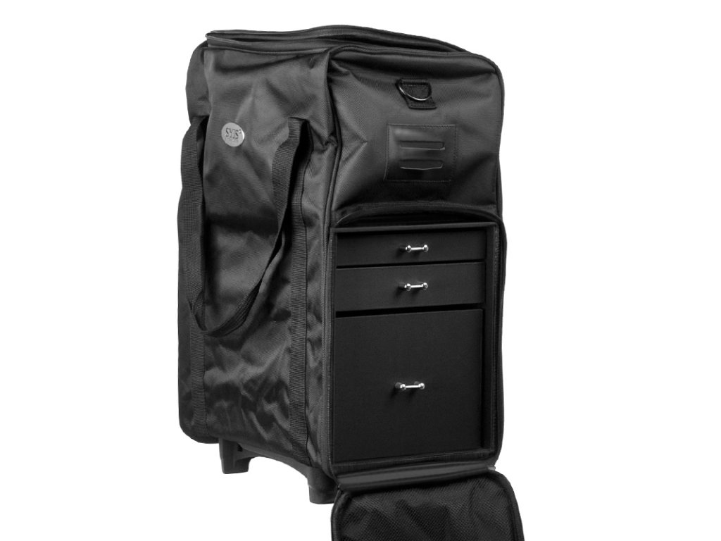 Kufr má dvě kola, díky nimž je přeprava produktů snazší.