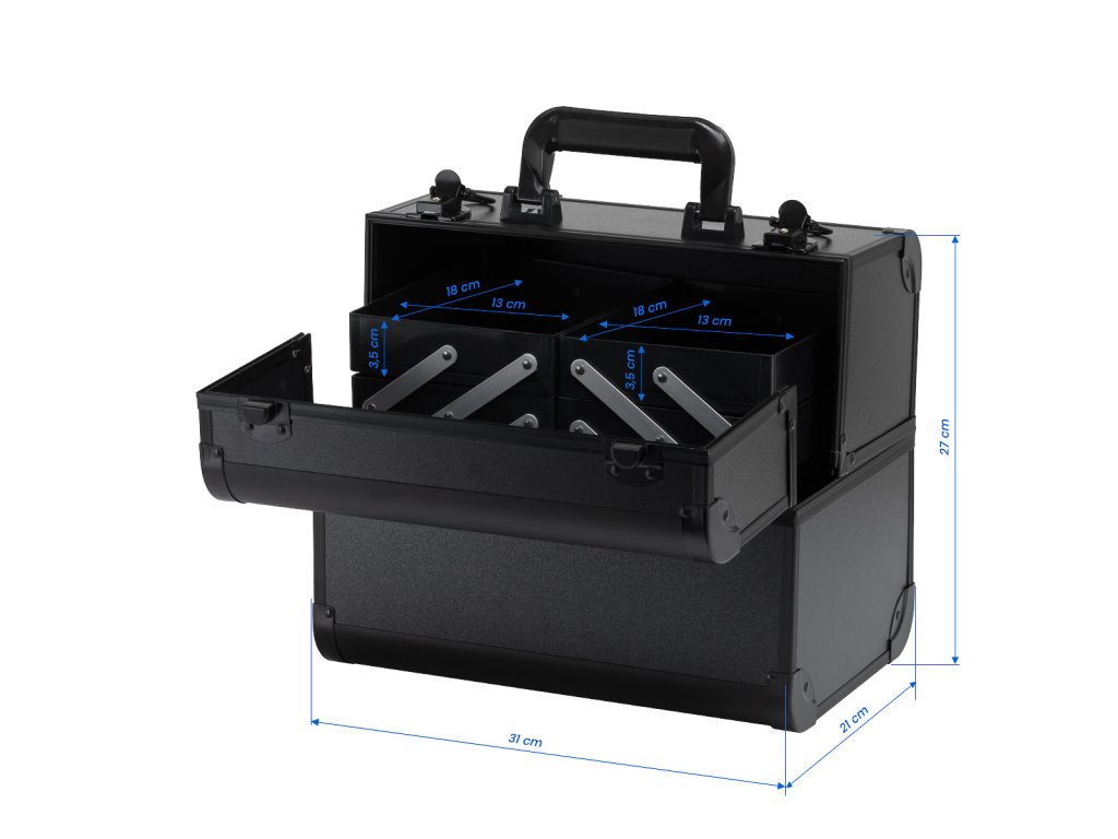 Tento stylový a praktický kosmetický kufřík je skvělým pomocníkem pro každodenní práci v terénu i v salonu. Nabízí ideální kombinaci funkčnosti, prostornosti a elegance. Je vhodný zejména pro mobilní stylistky, kosmetičky nebo nehtové designérky, které potřebují mít všechny důležité pomůcky přehledně uložené a vždy po ruce.