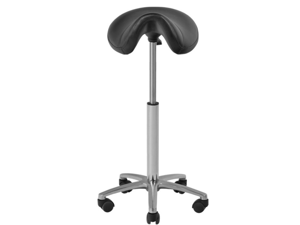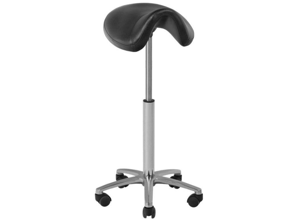 Pohodlná, stabilní kosmetická stolička bez opěradla, s profilovaným sedákem, na pětihvězdičkovém podstavci s pogumovanými kolečky, v černé barvě , nezbytný kus nábytku v kosmetickém salonu.