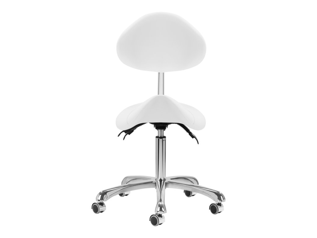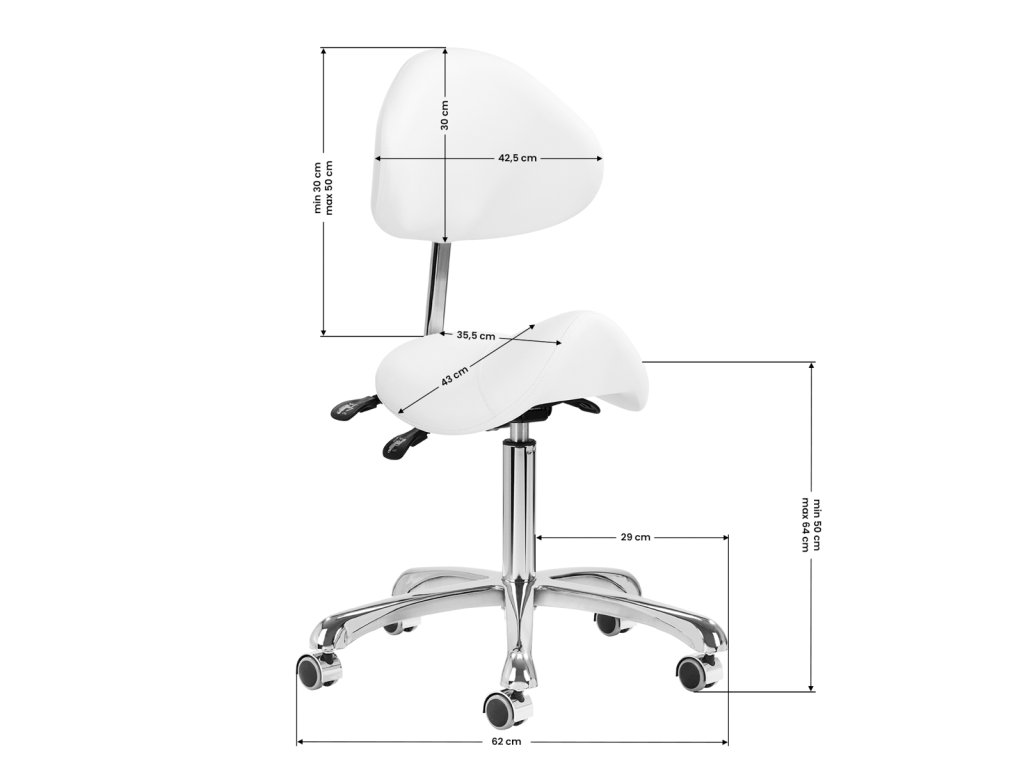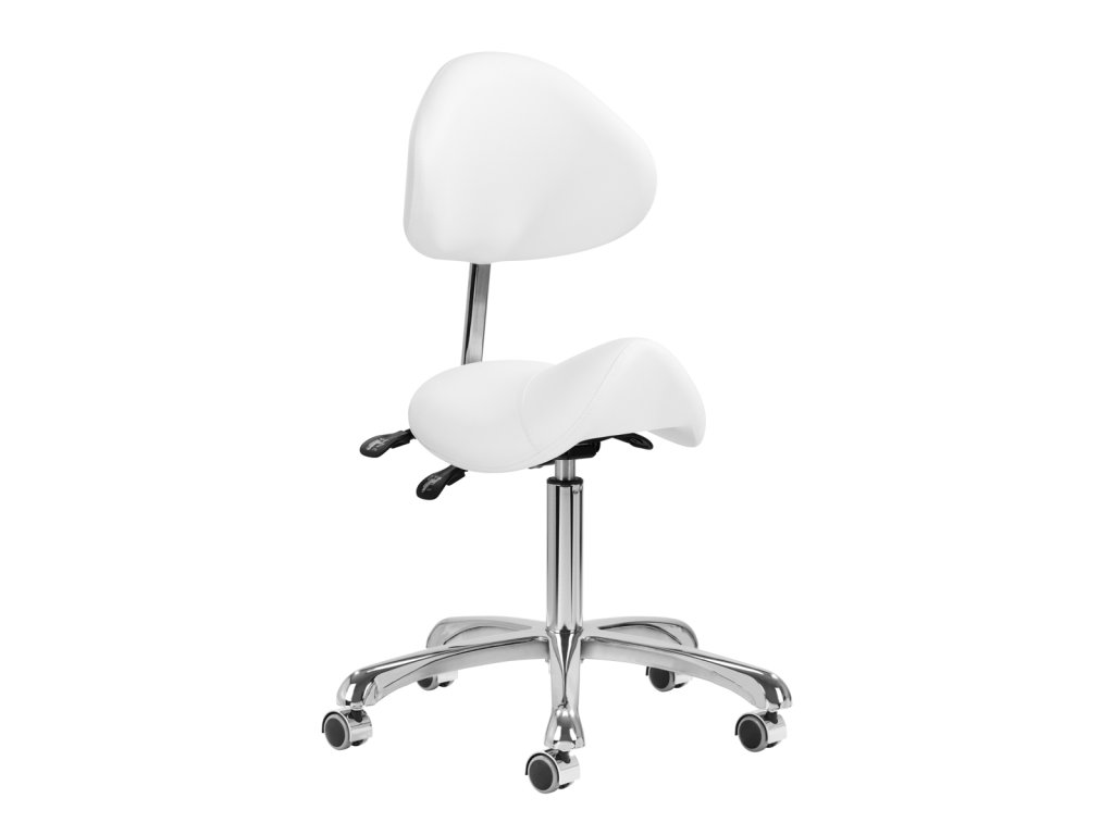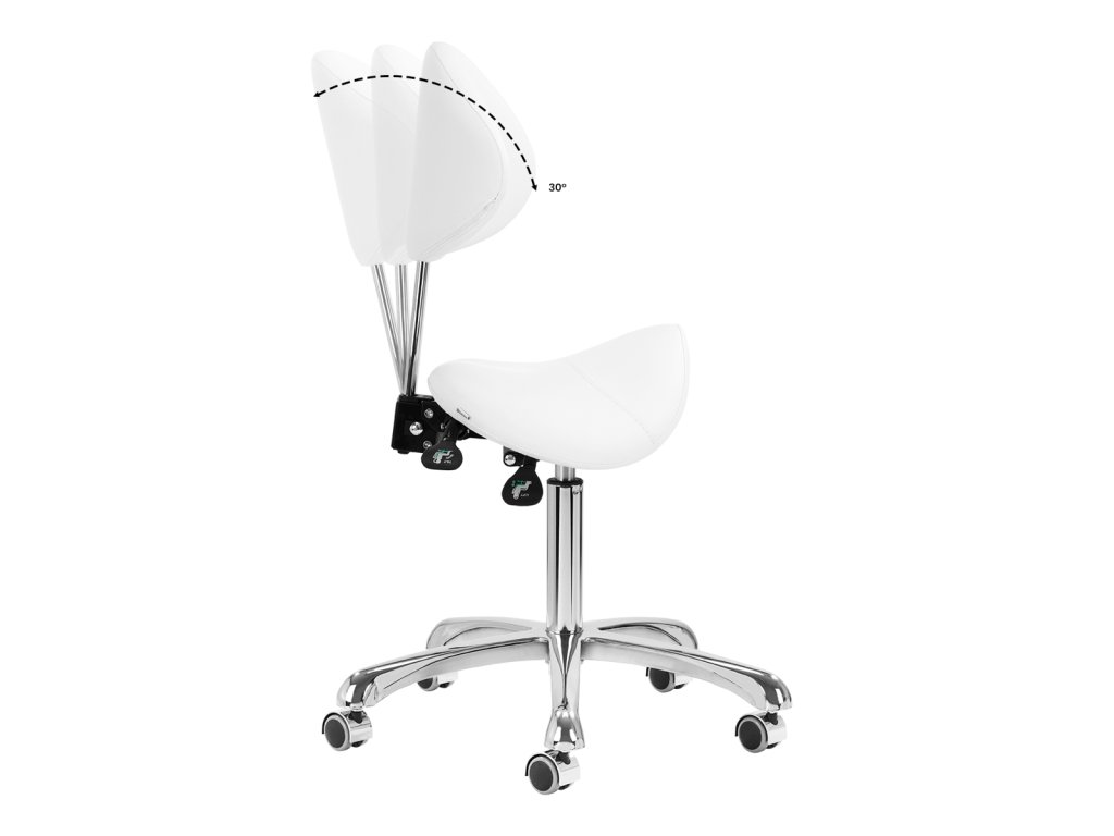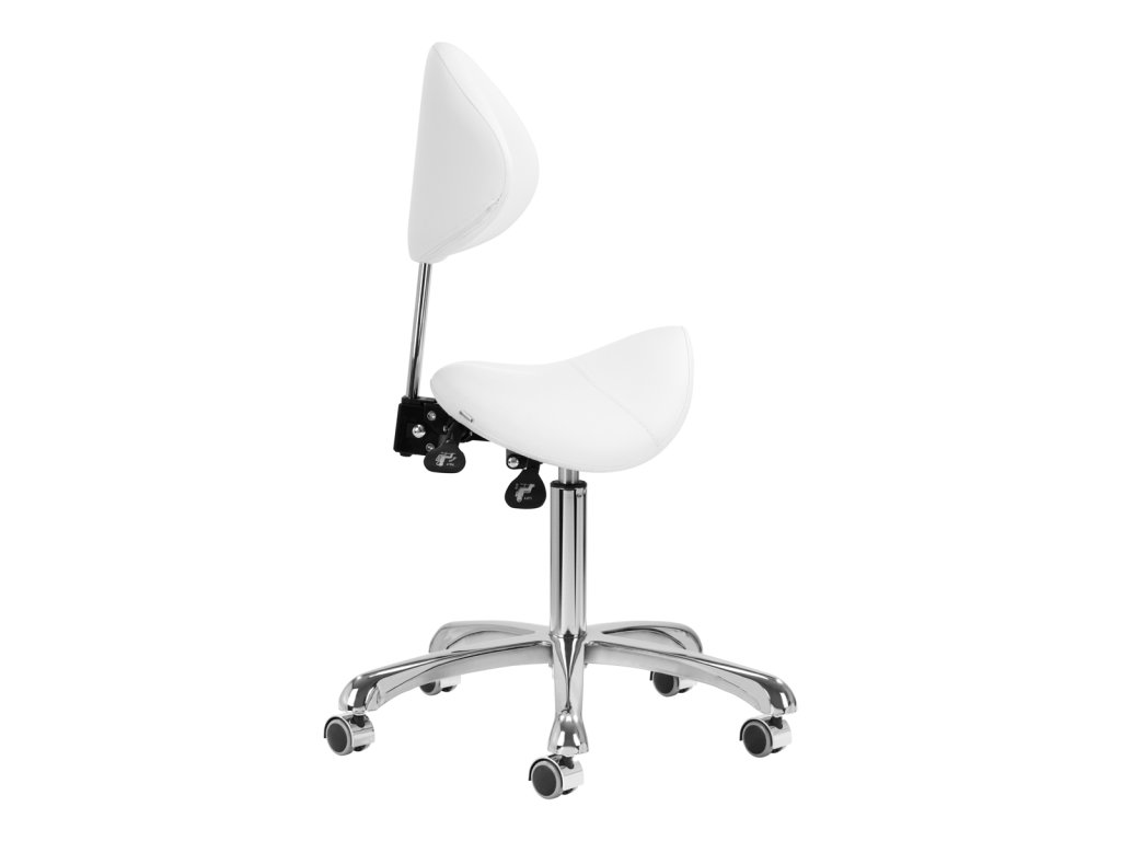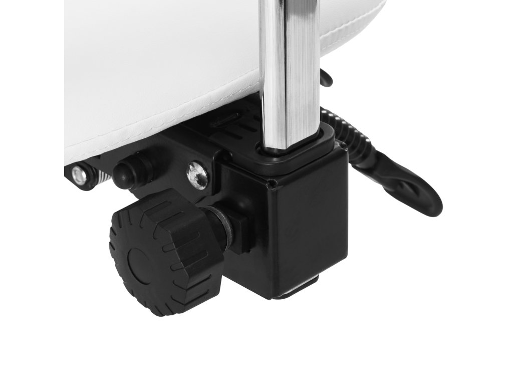 Pohodlný, exkluzivní, stabilní kosmetický taburet s opěradlem a profilovaným sedákem na pětihvězdičkové, velmi stabilní základně. Nastavitelný ve třech vrstvách: