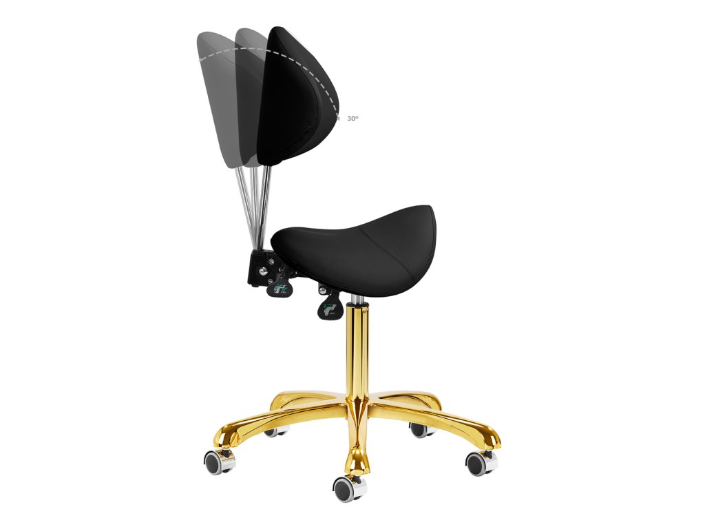 Možnost nastavení výšky sedadla v rozmezí 50-64 cm umožňuje specialistovi zaujmout vhodnou polohu při provádění služeb. Tvarovaná zádová opěrka , kterou lze prodloužit o 20 cm, poskytuje vynikající oporu zad bez ohledu na výšku uživatele. Díky mechanismu plné rotace je práce efektivnější a pohodlnější. Židle má také uzamykatelnou funkci kolébky , která umožňuje ergonomické polohování těla při práci. Správně profilovaný sedák ve tvaru sedla, vyplněný pěnou odolnou proti deformaci, zaručuje uživatelům pohodlí a ergonomii práce .