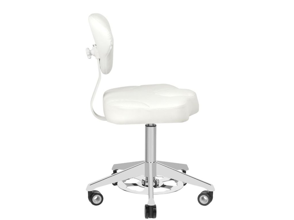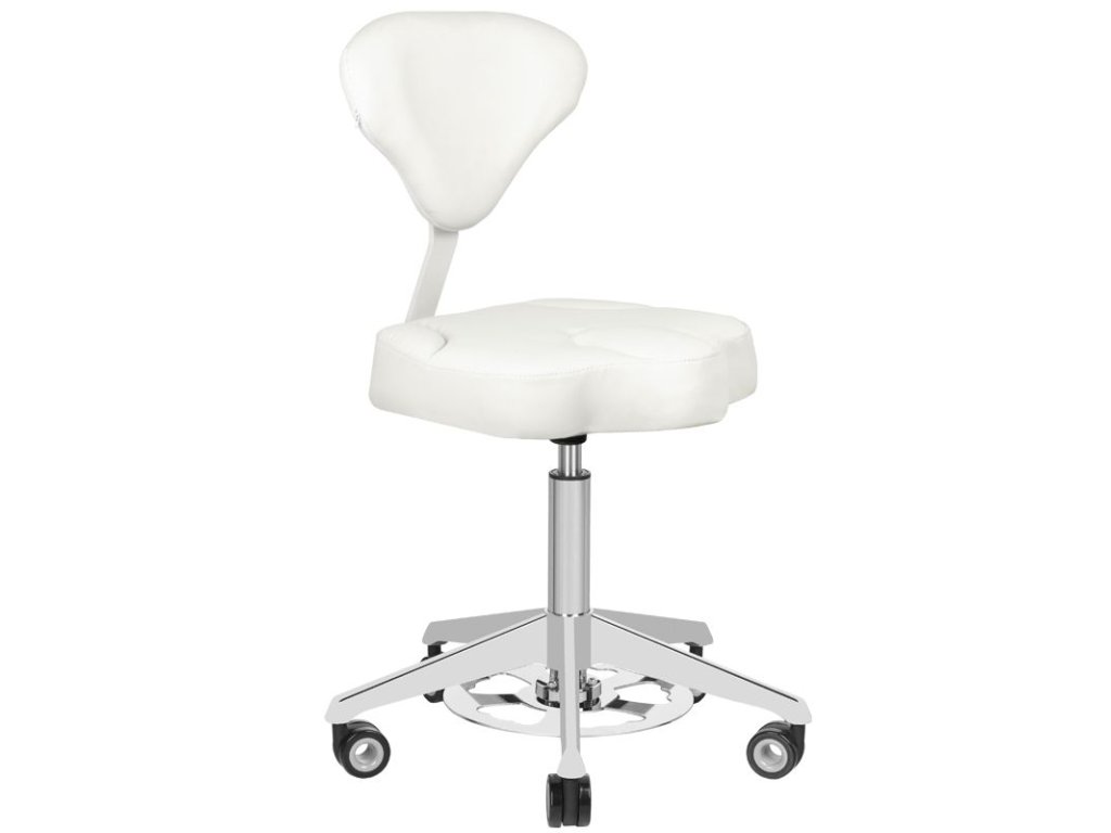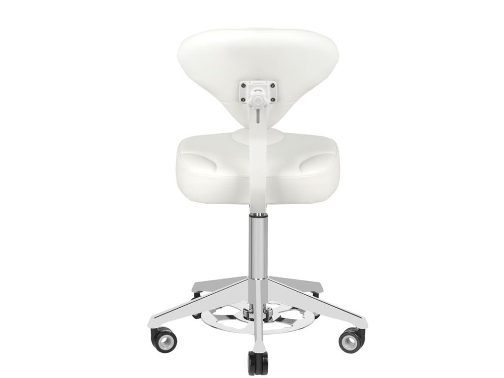 Pohodlná, exkluzivní, stabilní kosmetický taburet s opěradlem a profilovaným sedákem, na pětihvězdičkovém, velmi stabilním podstavci. Je vybaven senzačním systémem „bump-up“, který umožňuje nastavit výšku nohou bez použití ruky.