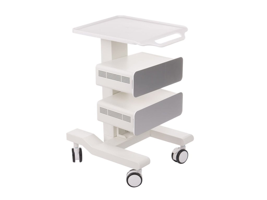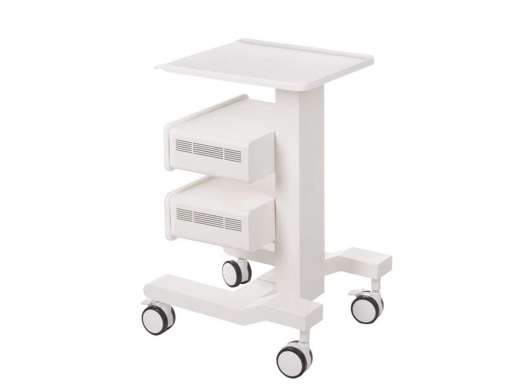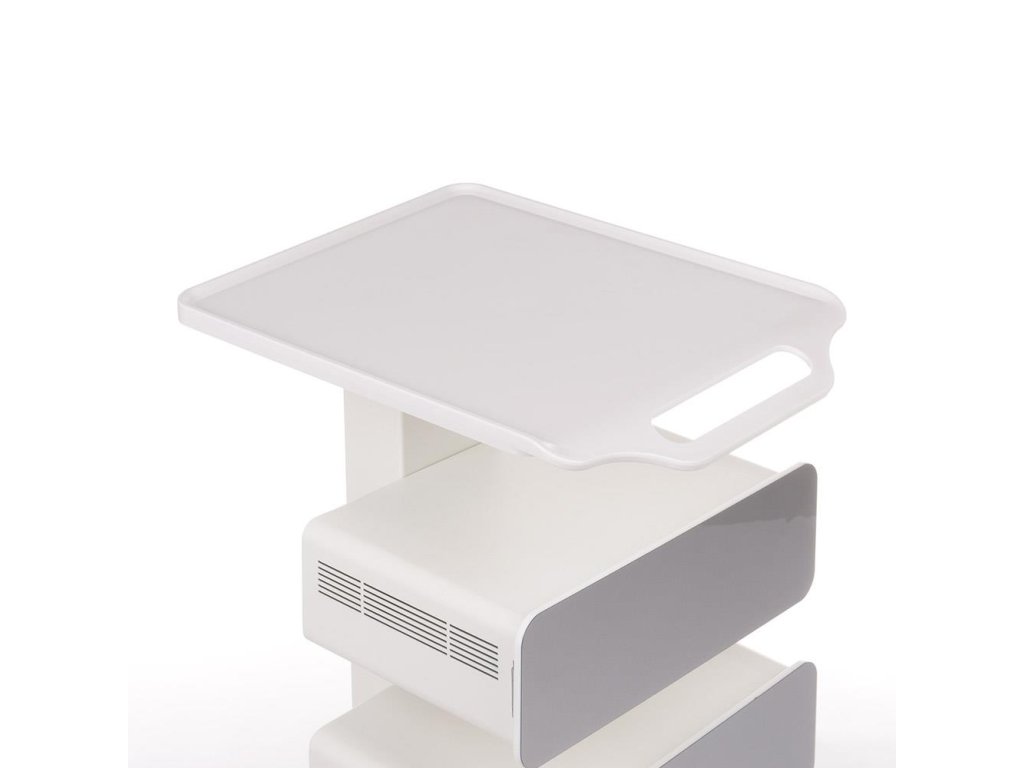 Další výhodou je mobilita – díky kolečkům lze vozík snadno přesunout podle potřeby, a pokud jej chcete zafixovat na jednom místě, pomohou integrované brzdy. Horní pracovní plocha z odolného plastu poskytuje dostatek místa pro pomůcky i přístroje, které potřebujete mít po ruce.