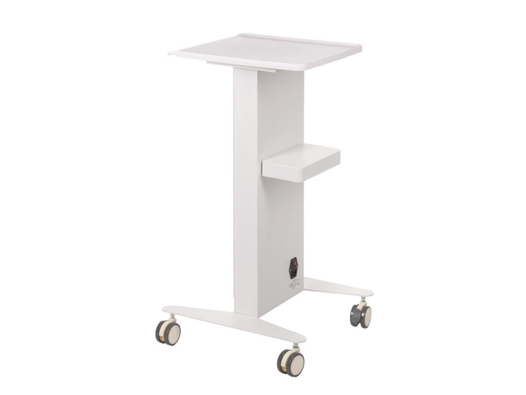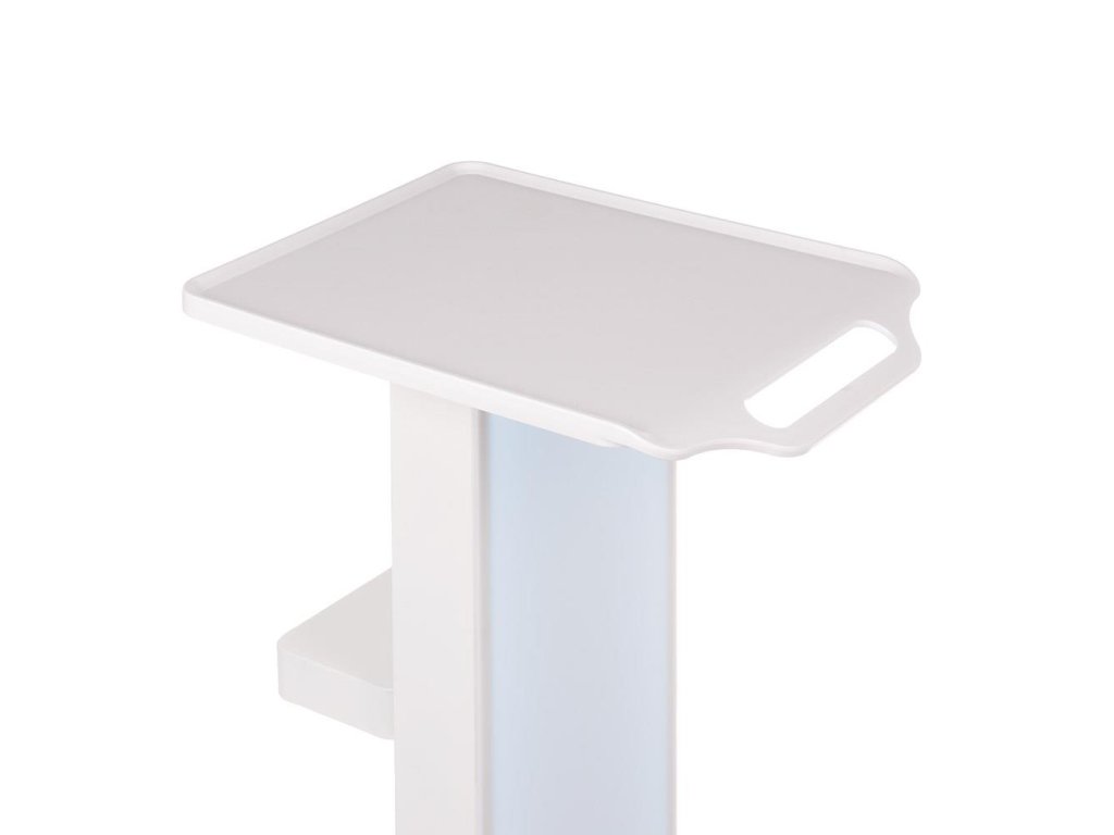 Vozík je vybaven pevnou horní deskou z odolného plastu, která poskytuje dostatek prostoru pro přípravky a pomůcky. K dispozici je také zadní malá polička, kterou lze otočit a využít jako mini přihrádku.