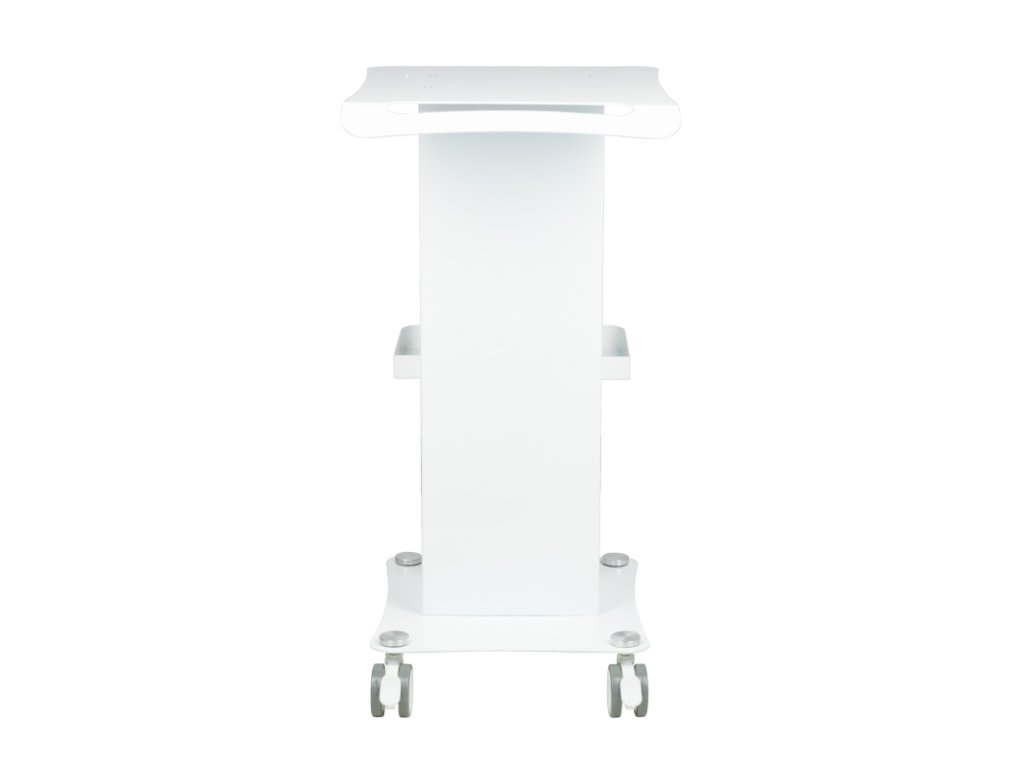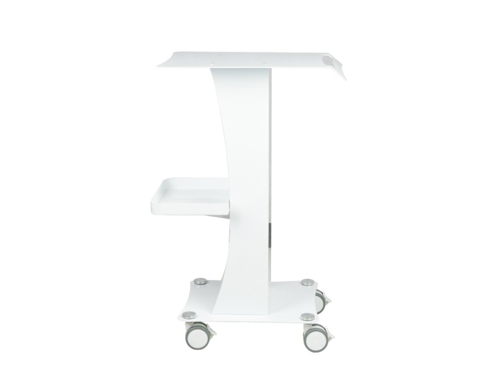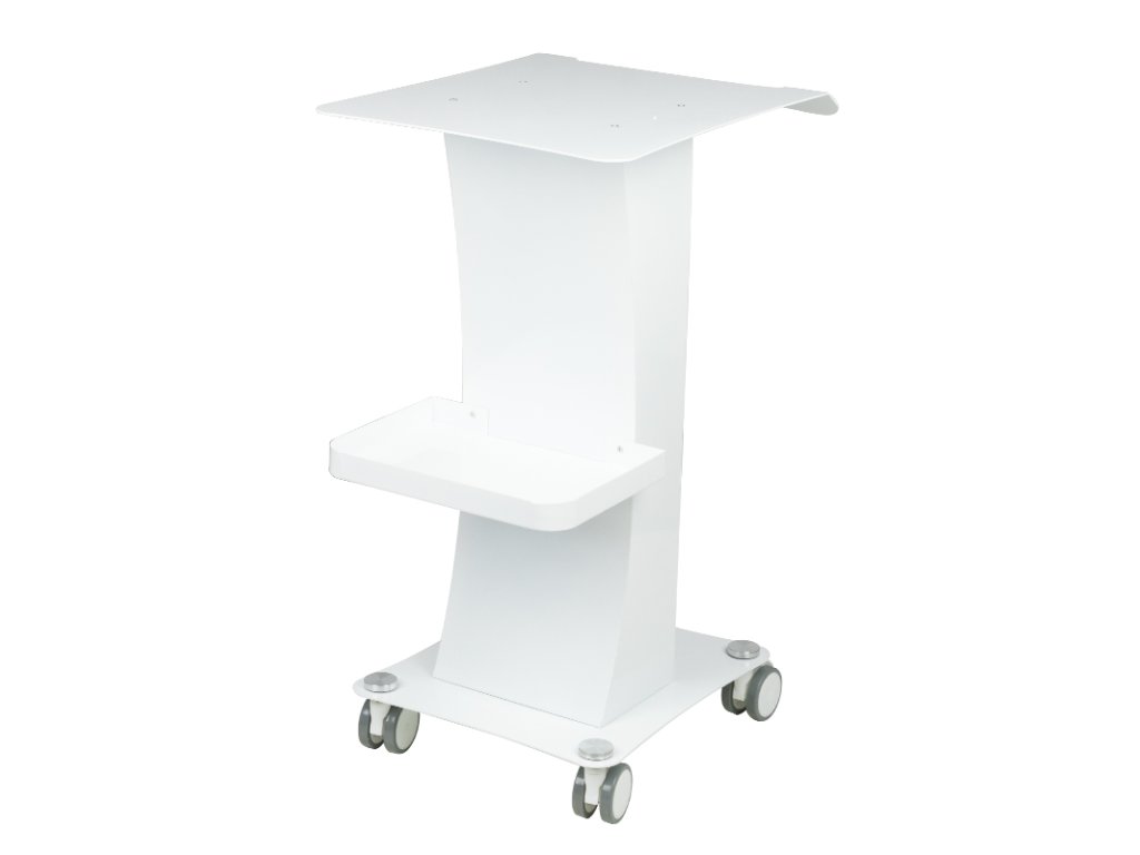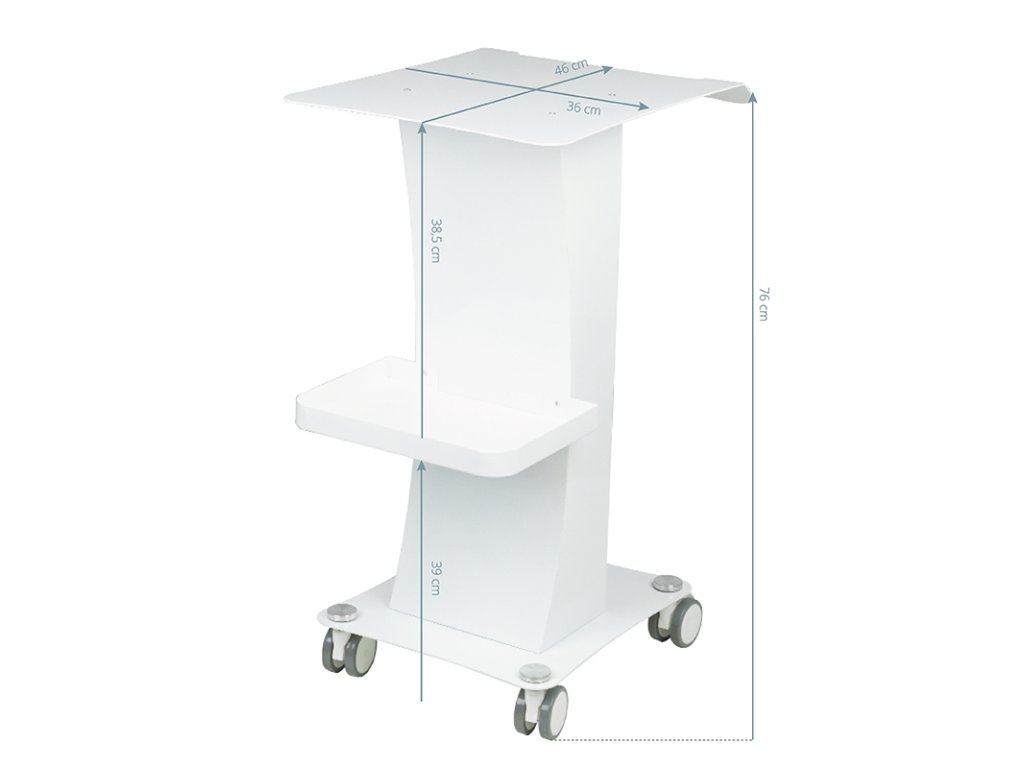 Funkční kovový stůl s gumovými kolečky s funkcí zámku. Perfektní jako stůl pro kosmetické zařízení. Má stabilní polici pro zařízení a další polici pro příslušenství a díky kolečku je stůl mobilní a snadno se pohybuje. Nábytek poskytuje pohodlí a pohodlí při práci.