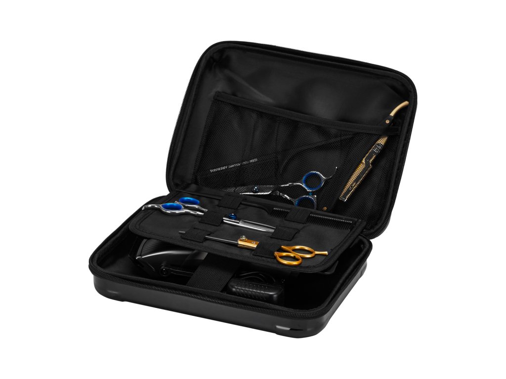 Kufřík poskytuje dostatek prostoru pro nůžky, hřebeny, kartáče a další kadeřnické příslušenství. Praktické bezpečnostní prvky na vnitřní straně zajišťují, že nástroje zůstanou v bezpečí i během přepravy. Použití vysoce kvalitních materiálů zajišťuje maximální odolnost a snadné čištění.