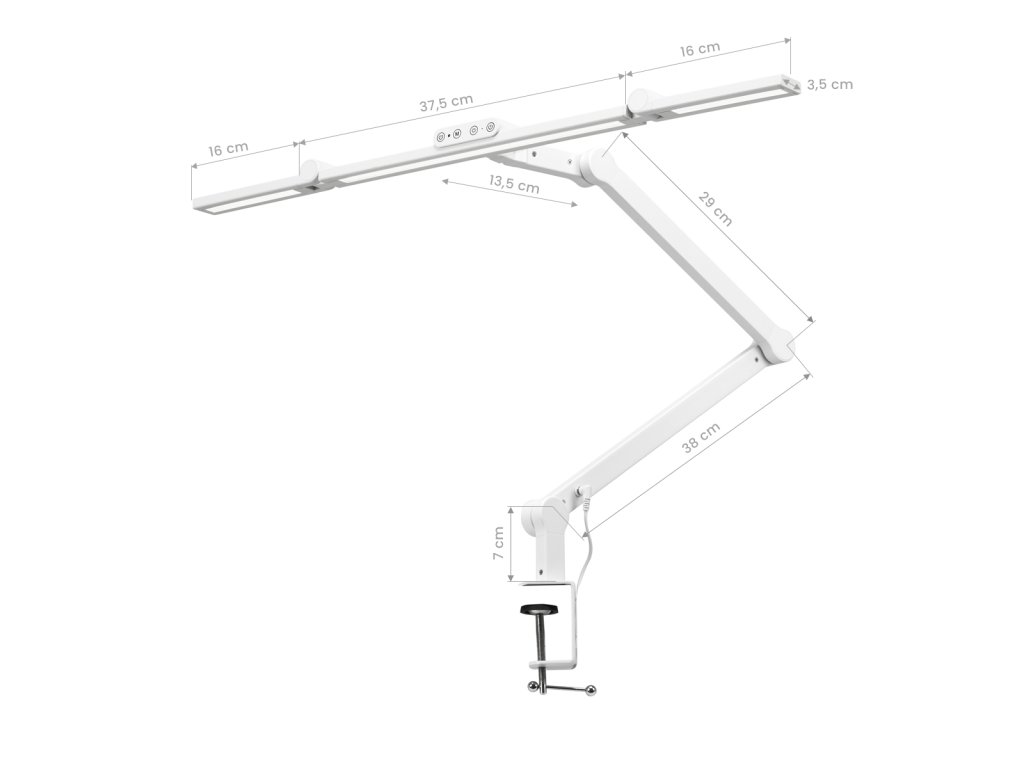 Jednoduchý tvar stativu v klasickém odstínu bílé a matná povrchová úprava mu dodávají elegantní vzhled a díky němu bude lampa vypadat skvěle téměř v každém interiéru. Snadná instalace na pracovní desku je možná díky rukojeti ve tvaru svěráku , jejíž maximální otevření je 6,3 cm - bude vhodné pro většinu pracovních desek .