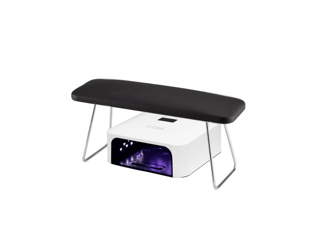 Profesionální manikúra opěrka. Čalounění je vyrobeno z ekokůže a nohy jsou z pochromované oceli. Vhodná výška podpěry zajišťuje pohodlnou polohu jak pro klienta, tak pro stylistku. Stylistka se nehrbí a drží se rovně, díky čemuž se zmírní bolesti zad.