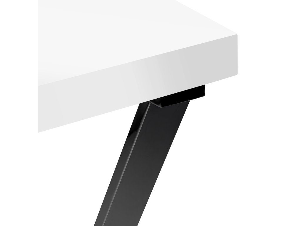 Bílý vršek ve vysokém lesku a geometrické černé nohy mu dodávají lehký a moderní charakter . Díky lehkému tvaru se bude psací stůl dobře hodit do intimních i prostorných interiérů a podtrhne jejich exkluzivní charakter .