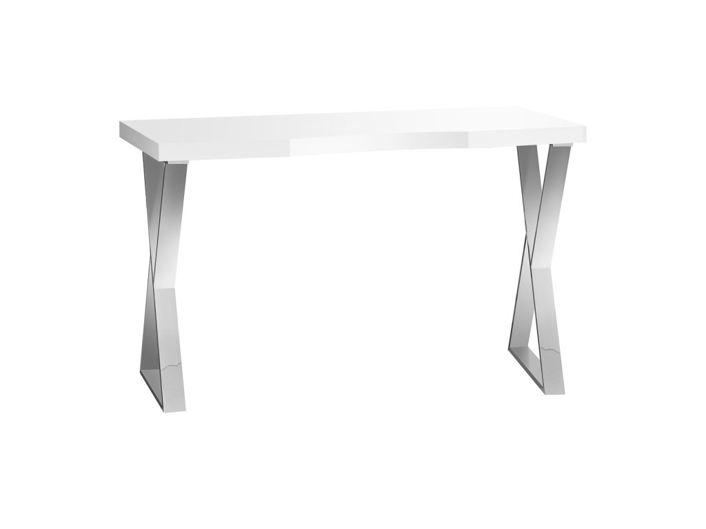 Bílý vršek ve vysokém lesku a geometrické černé nohy mu dodávají lehký a moderní charakter . Díky lehkému tvaru se bude psací stůl dobře hodit do intimních i prostorných interiérů a podtrhne jejich exkluzivní charakter .