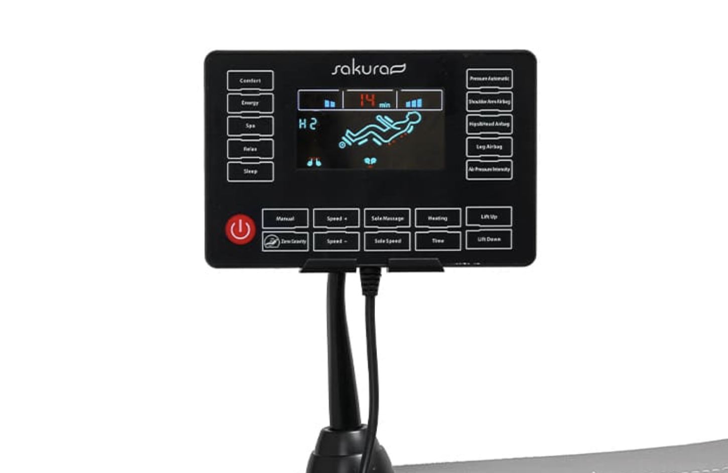Díky průhlednému ovládacímu panelu - který lze umístit na madlo namontované na pravé područce nebo jej držet v rukou - je používání křesla jednoduché a příjemné. Činnost zařízení můžete sledovat na přehledném LCD displeji . Přehledně se zobrazují oblasti těla, kde masáž právě probíhá, její intenzita, doba ošetření a zvolený program. Panel umožňuje libovolně upravovat nastavení křesla a masážní funkce , stejně jako nastavit délku ošetření, které může trvat 5, 10, 15, 20, 25 nebo 30 minut .