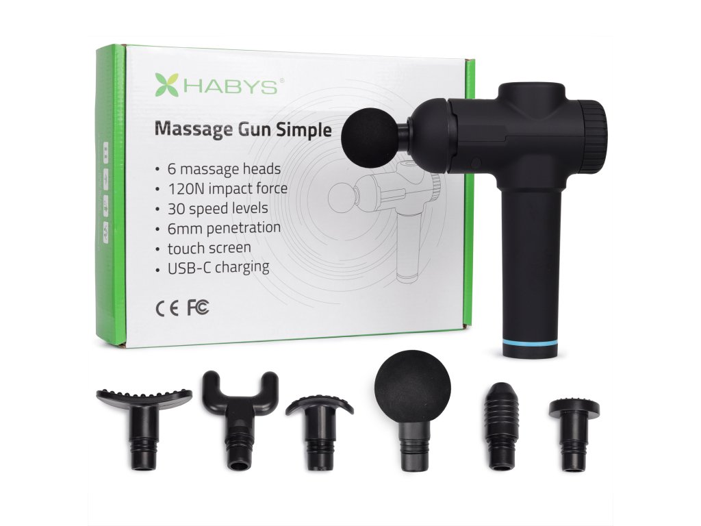The Simple massage gun by Habys is a next-generation device designed for self-massage and self-therapy. The set includes 6 interchangeable massage heads.Doplňkové parametry