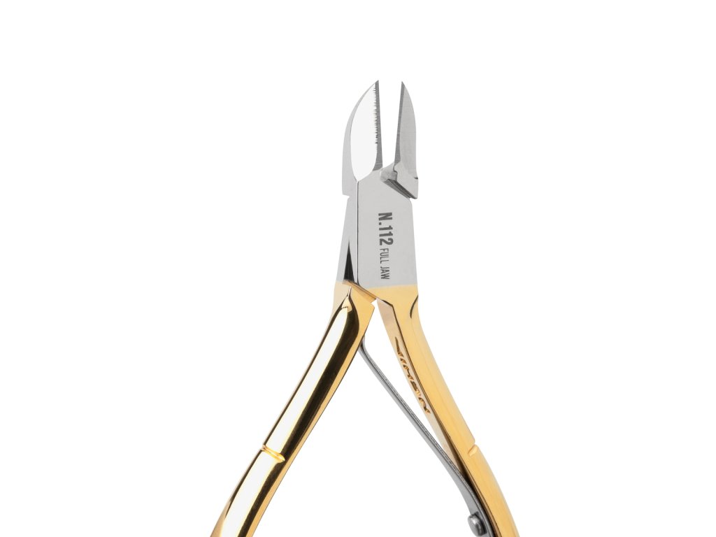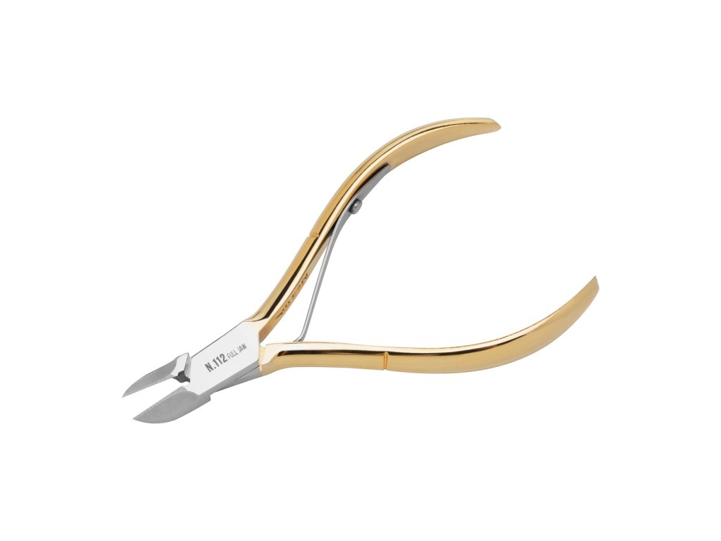 Pojedyncza sprężyna łączy ramiona cążek, zapewniając wyczucie oraz precyzję cięcia. Staranne jej wykonanie pozwala na komfortową pracę. Sposób wyprofilowania oraz wielkość ramion sprawiają, że cążki stabilnie leżą w dłoni, gwarantując wygodę użytkowania. Polerowane wykończenie w odcieniach złota sprawia, że prezentują się elegancko, a narzędzie jest trwałe oraz łatwe do utrzymania w czystości. Czyni je to idealnym narzędziem zarówno dla profesjonalistów, jak i podczas pielęgnacji paznokci w warunkach domowych.