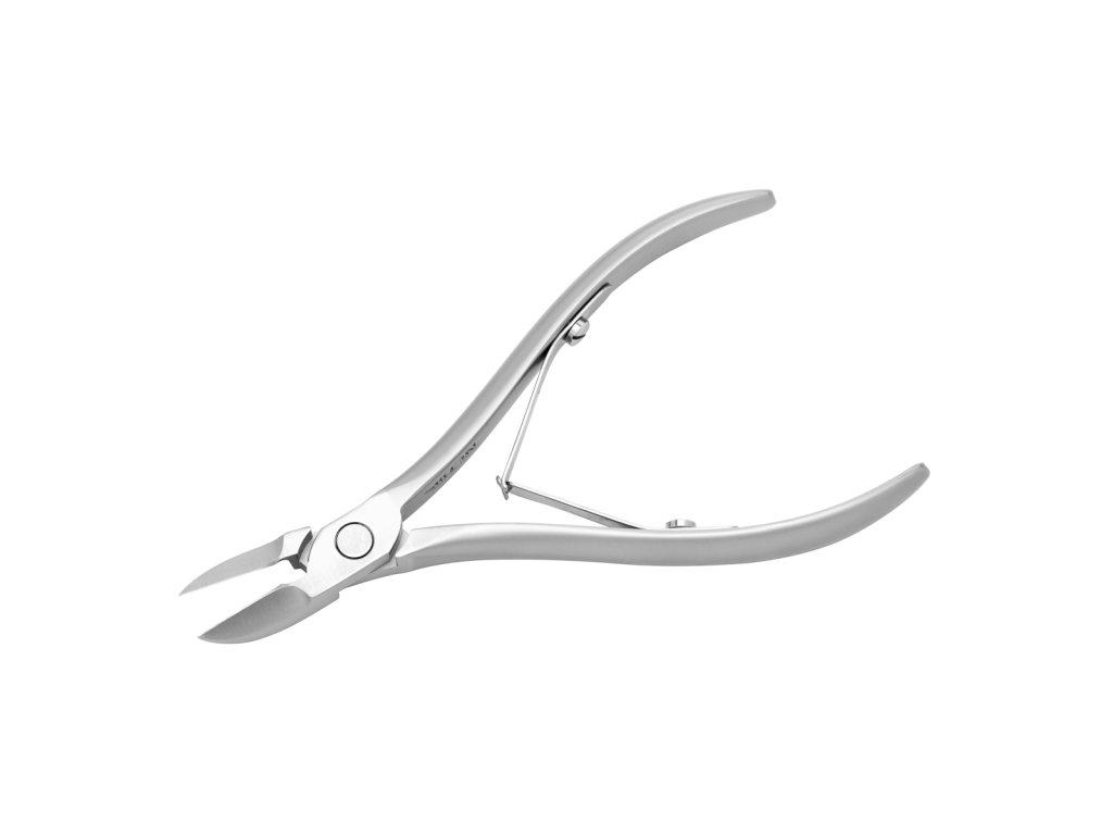 Podwójna sprężyna łączy ramiona cążek, zapewniając doskonałe wyczucie oraz precyzję cięcia. Staranne jej wykonanie pozwala na komfortową, cichą i płynną pracę. Sposób wyprofilowania oraz wielkość ramion sprawiają, że cążki stabilnie leżą w dłoni, gwarantując pełną wygodę korzystania. Matowe wykończenie sprawia, że prezentują się elegancko, a powierzchnia poddana pasywacji zwiększa ich odporność oraz ułatwia utrzymanie w czystości. Czyni je to idealnym narzędziem zarówno dla profesjonalistów, jak i miłośników pielęgnacji paznokci w warunkach domowych.