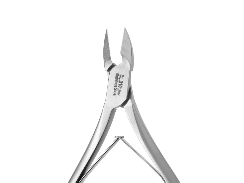 Masywne ostrza o długości 12 mm doskonale sprawdzą się podczas skomplikowanych zabiegów manicure. Charakterystyczny profil ścięcia oraz odpowiedni rozmiar ułatwiają wykonywanie skomplikowanych zabiegów. Szczęki cążek połączone są metodą Lap Joint, dzięki czemu w trakcie użytkowania stykają się perfekcyjnie, zapewniając dokładne cięcie. Cęgi posiadają dopasowaną osłonę na ostrza z trwałego tworzywa sztucznego.