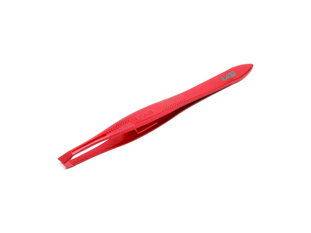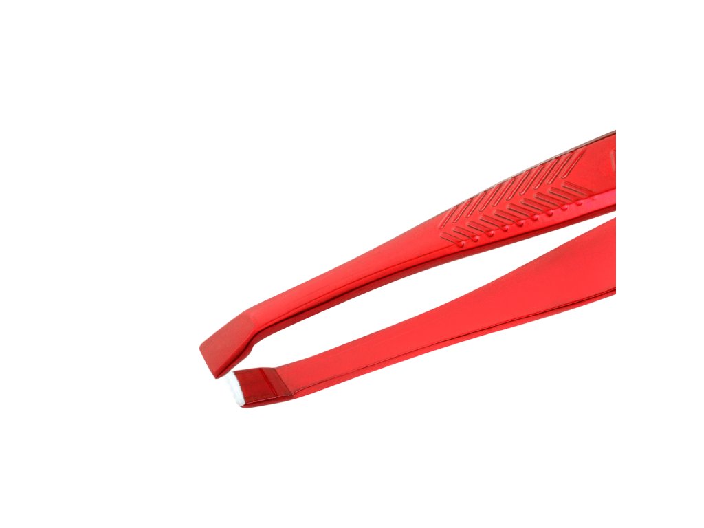 Wąska powierzchnia chwytania sprawia, że narzędzie jest bardzo precyzyjne – przy jego użyciu bez problemu dotrzesz do niechcianego włosa. Starannie wyprofilowane ramiona z elementami antypoślizgowymi gwarantują wygodne i precyzyjne manewrowanie, a skośnie ścięte ostrze zapewnia wszechstronność – umożliwia wygodne chwytanie nawet najdrobniejszych włosków i precyzyjne modelowanie brwi. Stylowy design pęsety, z metalicznym wykończeniem w odcieniach czerwieni, nadaje narzędziu elegancki i niepowtarzalny charakter.
