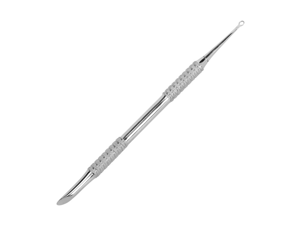 • Precyzyjne pierścieniowe oczko umożliwia dokładne oczyszczenie przestrzeni między paznokciem a skórkami oraz usunięcie drobnych niedoskonałości.