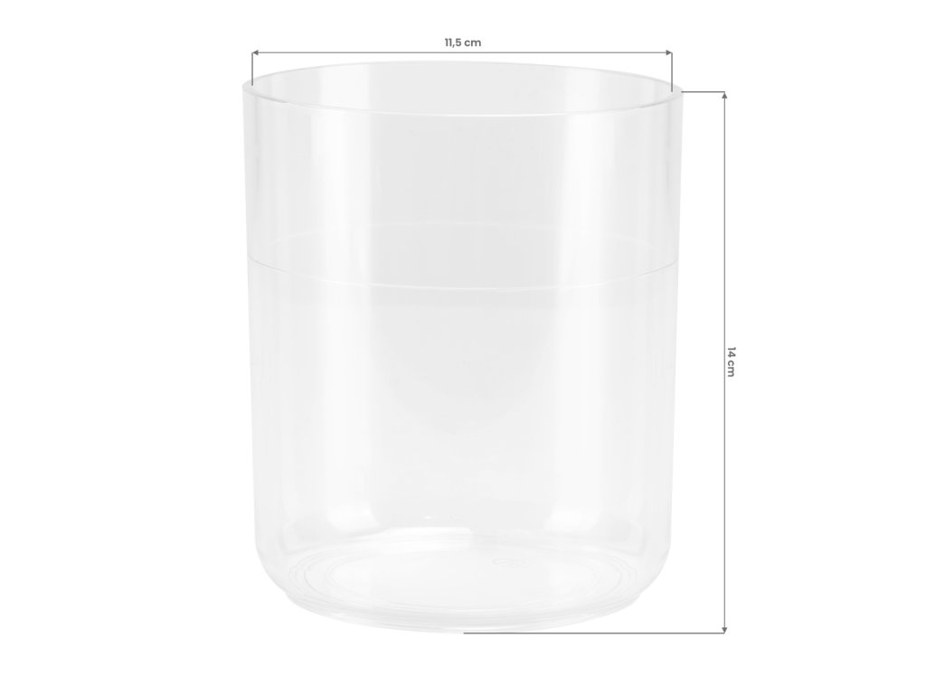 Sklenice na vodu pro wapozon z průhledného plastu. Použitý materiál zajišťuje odolnost vůči vysokým teplotám a snadné čištění. Náhradní nádoba na vodu o průměru +/- 11 cm a s pomlčkou vyznačeným maximálním objemem 800 ml je určena pro použití se stojanovým saunovým zvlhčovačem Gabbiano 828-FD.