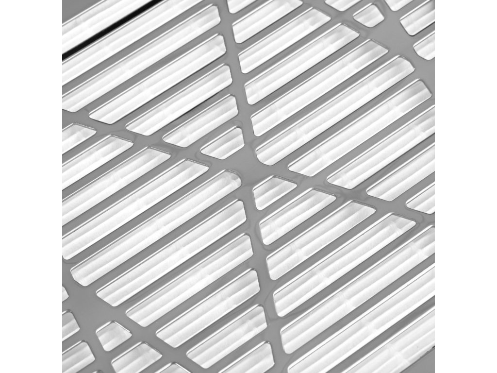 přímo na speciální filtr, který mu brání v úniku ven. Mřížka je vyrobena z vysoce kvalitní nerezové oceli a kartušový filtr na prach ze speciálního filtračního papíru.
