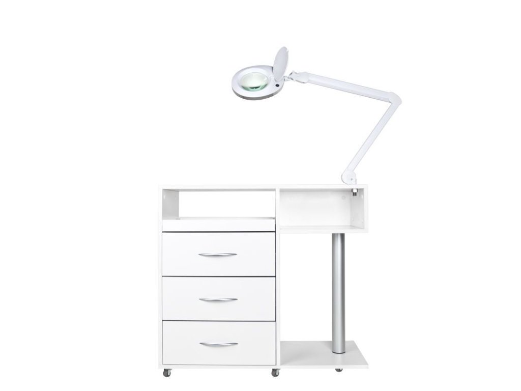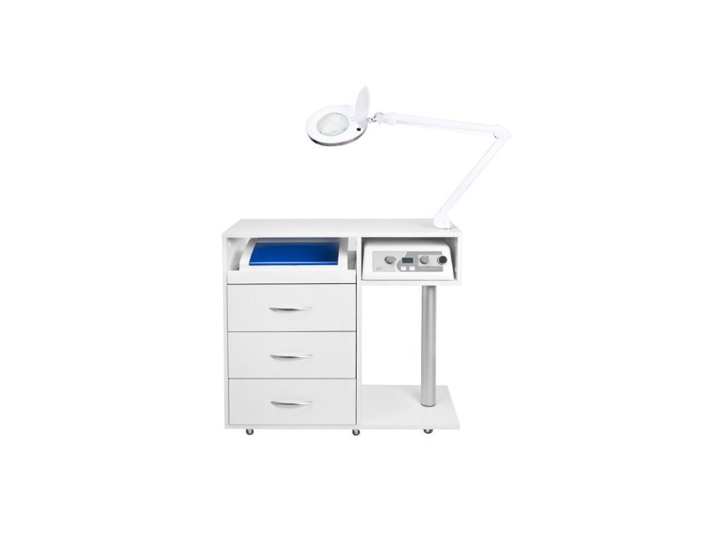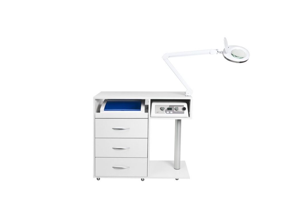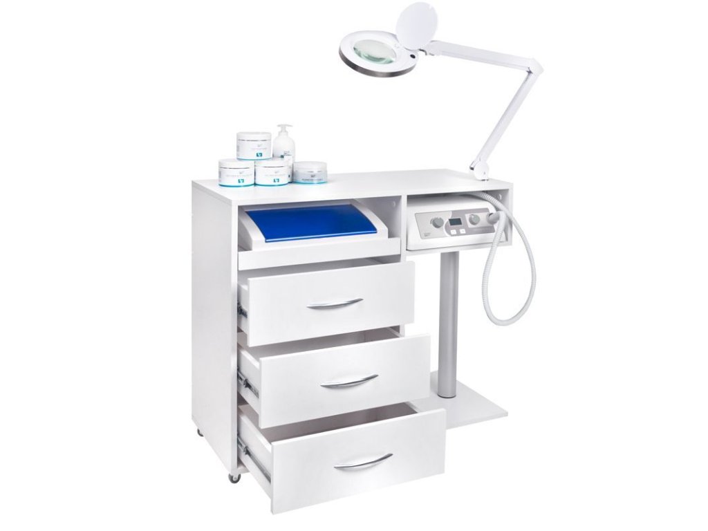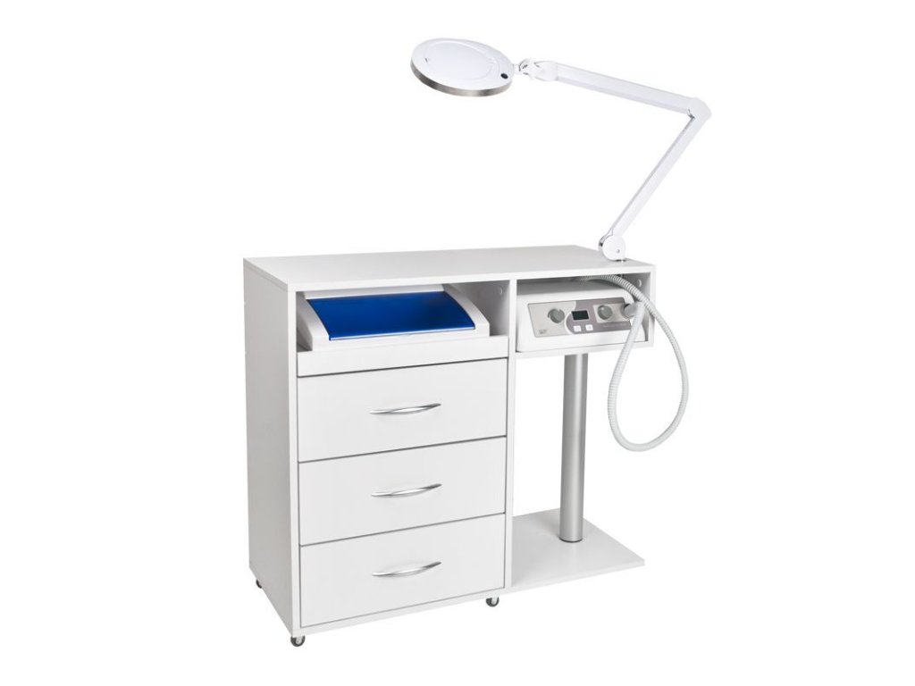 Robustní podiatrická jednotka Y-300 je navržena tak, aby usnadnila práci lékaře. Tři objemné zásuvky pojmou veškeré potřebné příslušenství, nástroje a produkty. Významnou výhodou je výsuvná polička, na kterou lze umístit vybavení nezbytné při práci podiatra, jako je sterilizátor nebo frézka. Bude také ideálním místem pro náčiní nebo přípravky, které se vyplatí mít neustále po ruce. Nábytek je vybaven kolečky, což usnadňuje práci a pohyb. Lze jej snadno přenášet mezi místnostmi. Držák TUBE umožňuje připevnit lampu přímo na desku stolu v jakékoli poloze. Pomocník je vyroben z odolných materiálů, snadno se čistí a výrazně zlepší výkon specializovaných služeb.