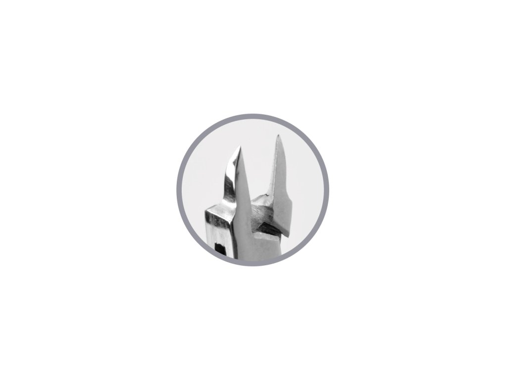 Díky jejich jedinečnému tvaru a velikosti můžete snadno a bezpečně odstranit těžko dostupné úlomky zarostlé nehtové ploténky. Kleště 08 jsou perfektní pro zkracování hluboko zasazených nehtů díky přesné čepeli a dvoupružinovému systému, který zajišťuje bezpečnost při používání.