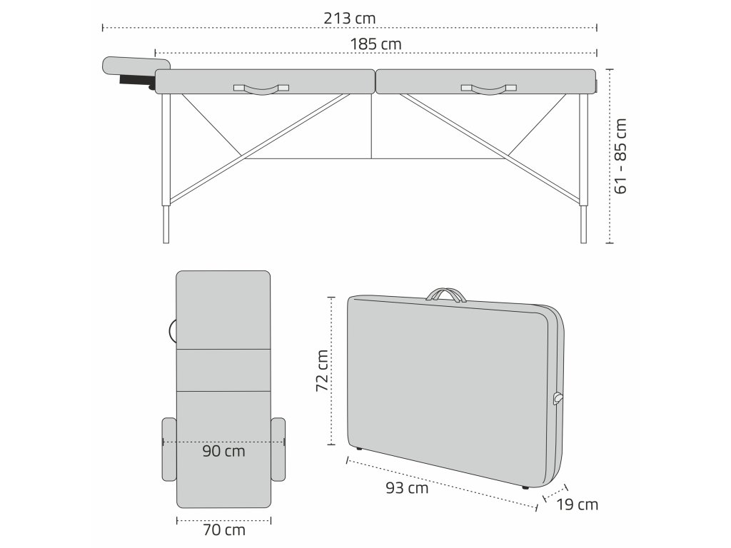 | Length without face rest / with face rest: | 185cm / 213cm |