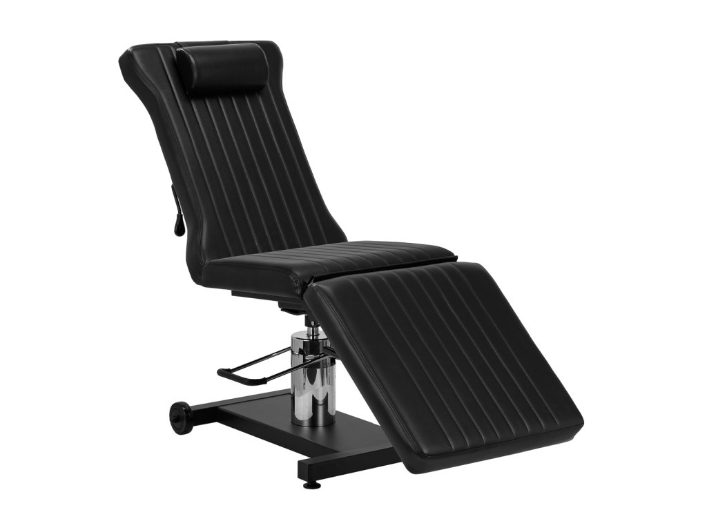 Minimalistický vzhled a klasické barvy předurčují křeslo do každého tetovacího salonu a výrazně zefektivňují služby . Pomáhá tetované osobě i umělci zaujmout pohodlnou polohu . Výplň z pěny odolné proti deformaci, potah na dotek příjemnou syntetickou kůží v odstínech černé a stabilní kovový rám zajišťují odolnost a snadné čištění zařízení . Estetické prošívání mu dodává jedinečný charakter. Kolečka umístěná v jedné části podstavce ovlivňují pohyblivost a usnadňují jeho přemisťování.