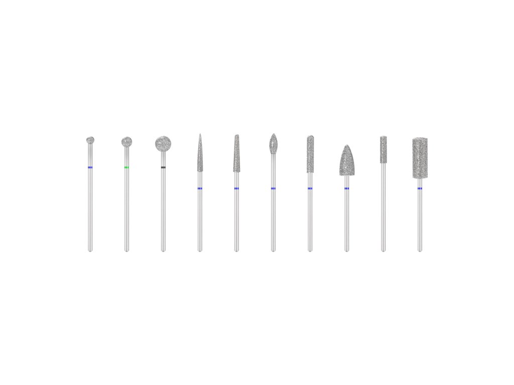 Profesionální sada diamantových fréz vyrobených z nejkvalitnějších materiálů je určena k čištění, vyhlazování a formování kůžičky a bočních periunguálních dříků. Frézy jsou užitečné zejména při přípravě nehtů na kombinovanou manikúru. Můžeme je také použít k odstranění ztluštění v blízkosti nehtové ploténky nebo tvarování nehtu a odstranění hybridních laků, gelů, akrylů bez poškození nehtové ploténky.