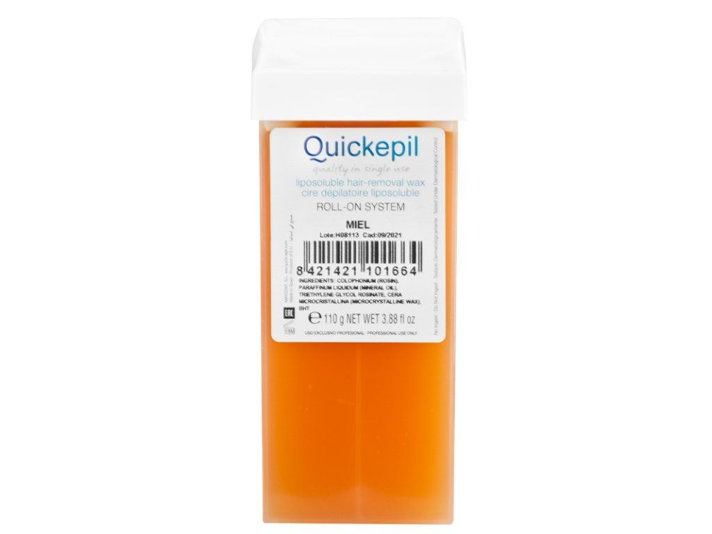 Roll-on vosk QUICKEPIL je speciálně vyvinut pro kosmetičky, které hledají vynikající výsledky. Díky speciálnímu receptu válec roztáhne vosk na mnohem tenčí proužky, což způsobí téměř okamžité ochlazení, čímž se minimalizuje pečení. Produkt je poté snadno odstraněn proužky. Univerzální vosk na všechny druhy kůže na bázi včelího vosku.