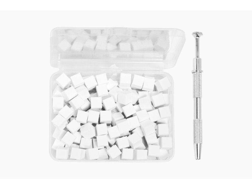 Dále sada obsahuje 96 elastických, nízkoporézních houbiček, které jsou připravené k okamžitému použití bez nutnosti úprav, a ergonomický držák, jenž zajišťuje pohodlnou a přesnou aplikaci bez zbytečného tlaku na nehet.