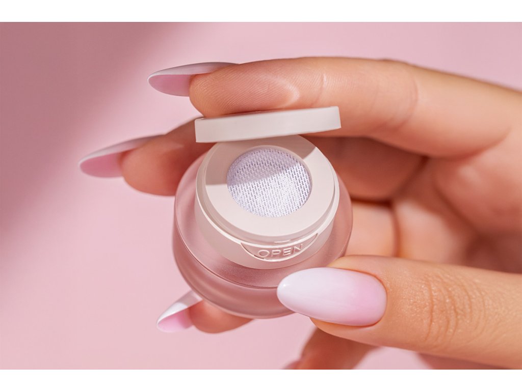 Součástí setu je vysoce pigmentovaný bílý ombré gel s pastovitou konzistencí, který se snadno nanáší, nestéká a umožňuje plnou kontrolu nad výsledným efektem. Gel je uložen v kelímku se speciální mřížkou, díky které se na houbičku nabírá optimální množství produktu.