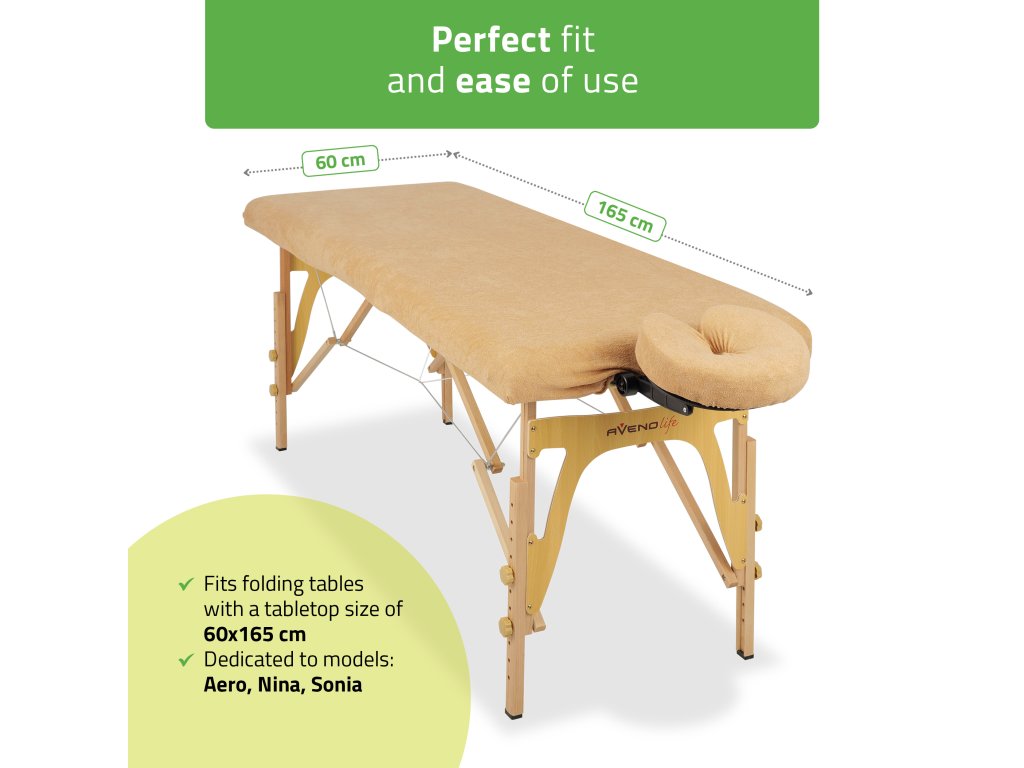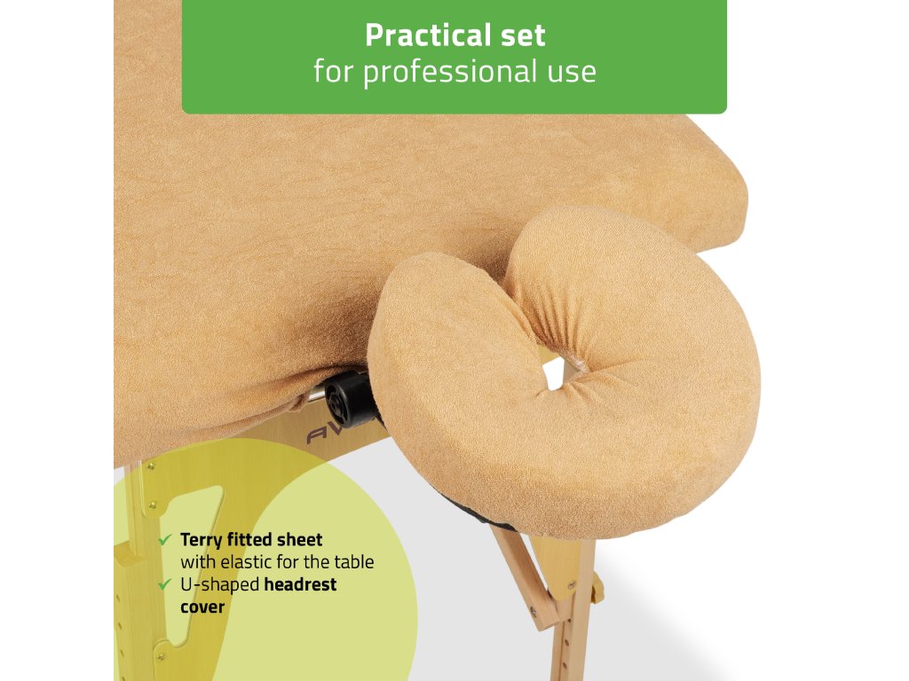 Set – 1-piece terry sheet for folding tables – 60/165 cm, beige terry headrest cover
