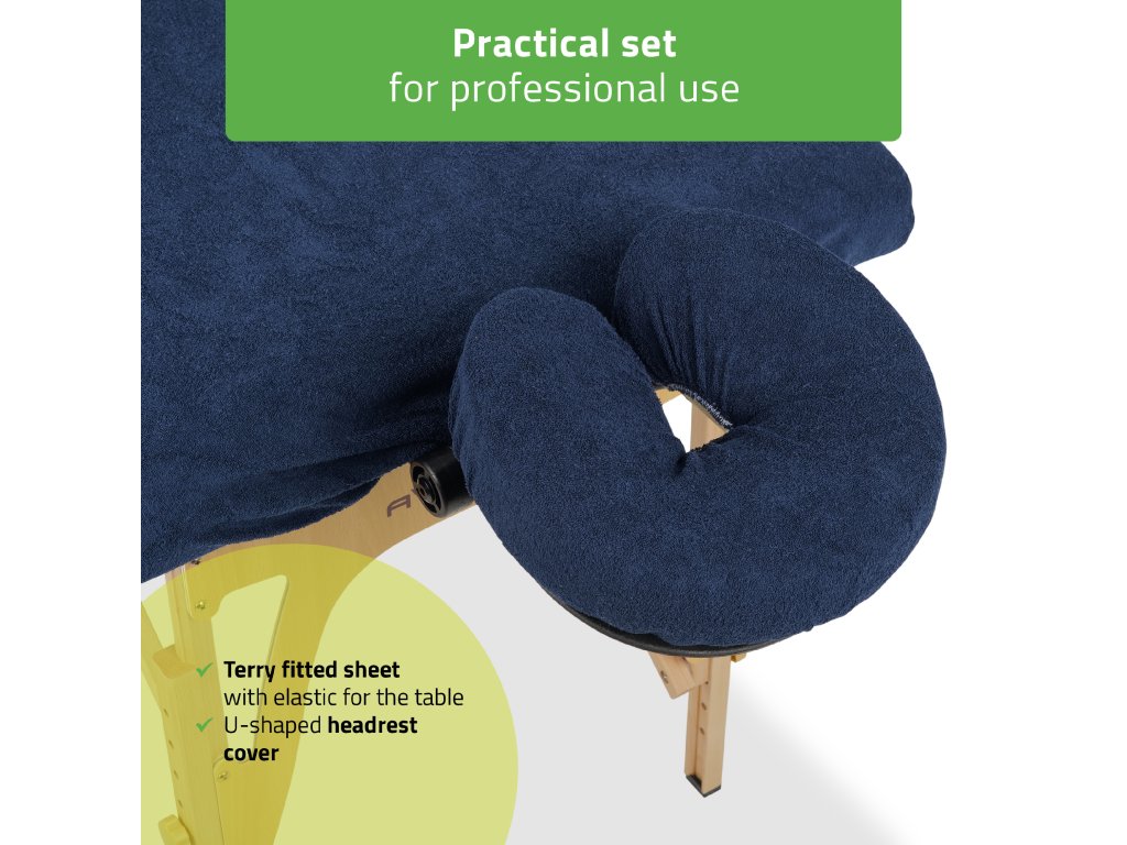 Set – 1-piece terry sheet for folding tables – 60/165 cm, navy blue terry headrest cover