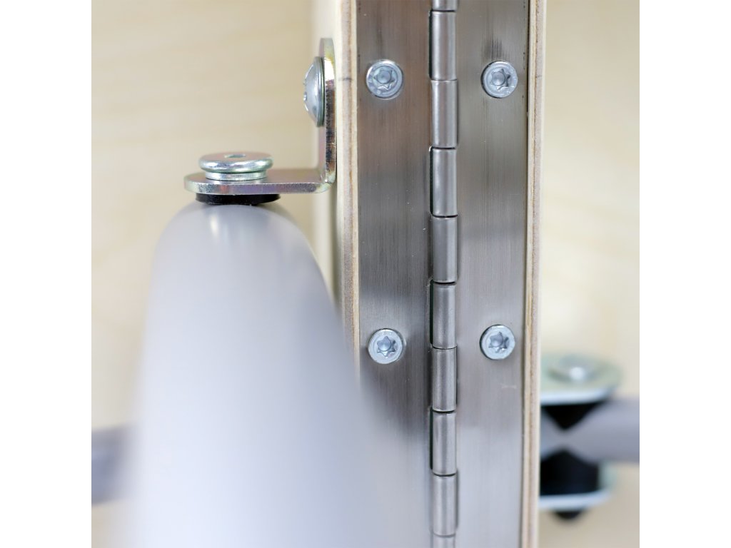 - Odolný závěs z nerezové oceli zajištěný ochranným límcem čalounění