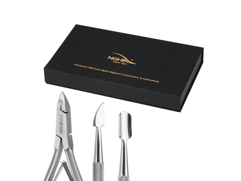 Sada profesionální manikúry NGHIA obsahuje nástroje, které zajistí dokonalé výsledky při přípravě nehtové ploténky. Skládá se z přesných kleští na kůžičku a všestranného kopyta , které je dokonalou kombinací funkčnosti, kvality a stylu. Celý set byl zabalen v luxusní krabičce s magnetickým zavíráním . Je to nejen praktický způsob uložení nářadí, ale také jedinečný prvek, díky kterému je sada perfektní jako dárek.
