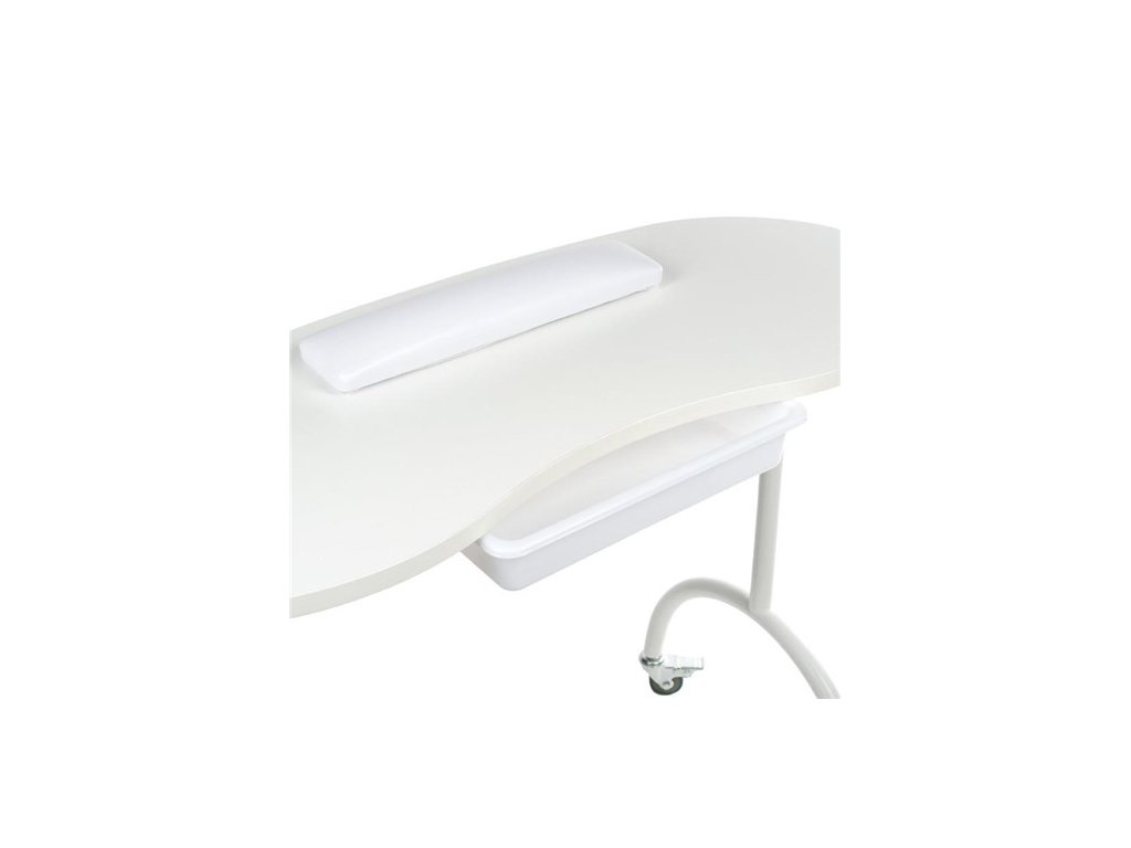 Stůl má velkou desku (100 cm x 37 cm), která umožňuje volnost a dobrou organizaci práce. Zásobník umístěný pod deskou bude ideální pro uložení drobného nářadí, jako jsou nůžky, pilníky a další. Další výhodou přenosného stolu je, že jej lze složit, což šetří místo, což je důležité zejména v malých místnostech nebo při přepravě v případě mobilní kanceláře.Stůl se dodává také s modrou polyesterovou taškou, díky níž můžete stůl snadno přepravovat nebo přemisťovat.Funkční a estetický. Snadno se udržuje v čistotě. Kolečka pro snadný pohyb. Funkční přihrádka pod stolem. Brašna pro snadnou přepravu.