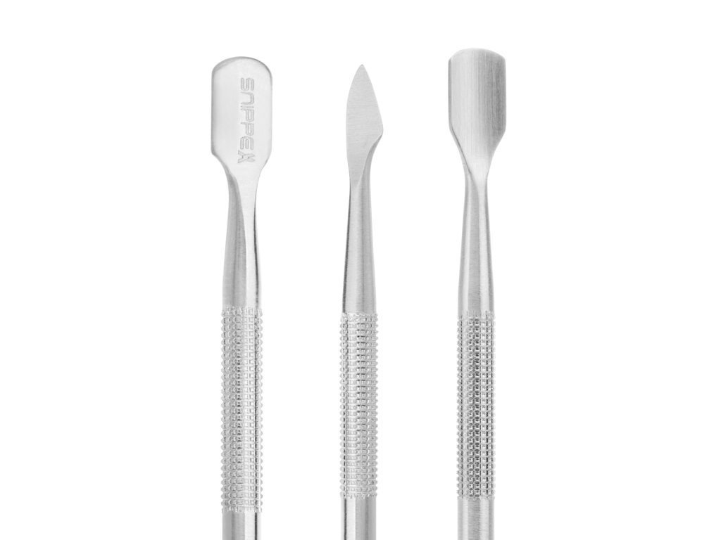 • Zaokrąglona łopatka doskonale sprawdzi się od odsuwania skórek. Jej małe wymiary pozwolą na dotarcie również do trudniej dostępnych miejsc. Profilowana końcówka jest oszlifowana w taki sposób, by skutecznie usuwać skórki, jednocześnie nie uszkadzając płytki paznokcia.