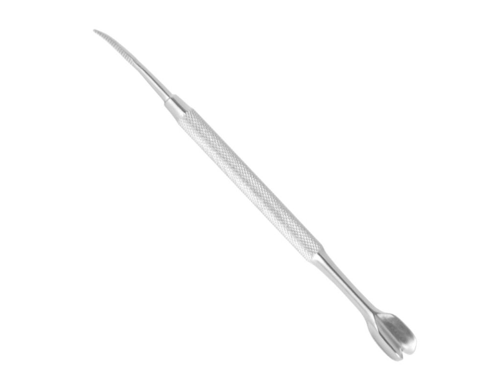 Úhlový pilník se používá pro specializované podologické práce. Zvláště, když se práce týká zarůstání nehtů. Lze s ním pilovat boky nebo těžko dostupné okraje nehtů.
