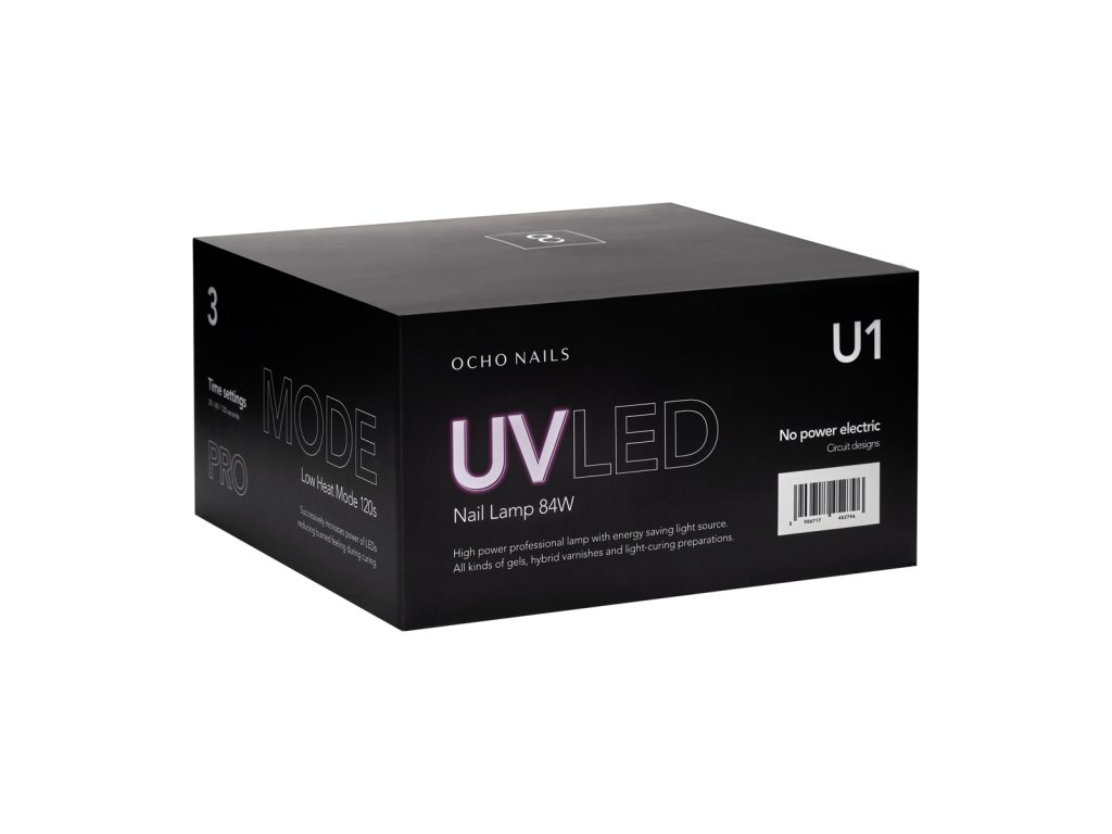 Lampa na nehty Ocho Nails 8 je zařízení, které díky svým praktickým funkcím umožňuje snadno provádět manikúru a pedikúru hybridními laky, gely nebo jinými světlem tuhnoucími přípravky. Rovnoměrně rozmístěné LED diody a použitá technologie Dual LED zaručují dokonalou fixaci nehtového stylingu . Minimalistický design, snadné použití a užitečné funkce dělají z lampy perfektní pro profesionální i domácí použití.
